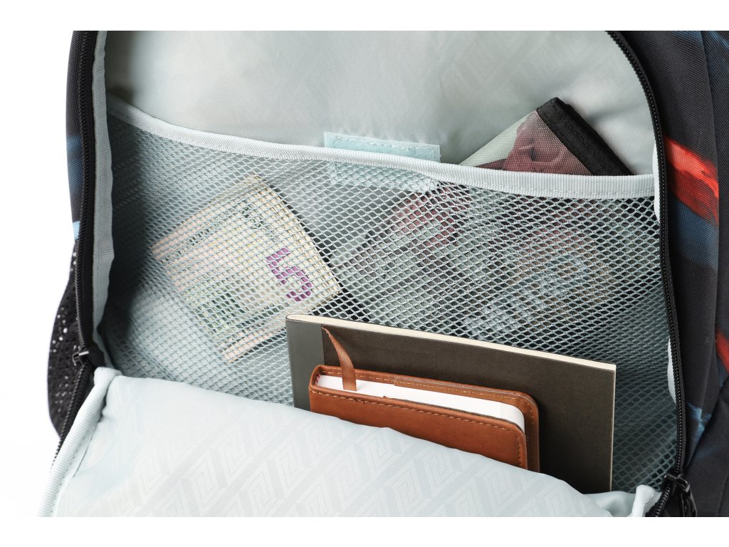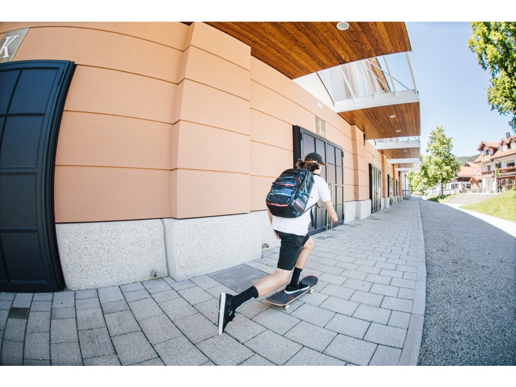 Objem 35 l. Fleecem vystlaná kapsa na brýle a podobně choulostivé věci, vypolstrovaná kapsa na 17" notebook - skrytá pod "zády" batohu a na samostatný, nenápadný zip. Dvě hlavní prostorná oddělení, prostorný organizér, vnitřní kapsa na suchý zip, vhodná pro nabíječky, kabely tad., popruh na skateboard, boční síťka na lahev, boční polstrovaná kapsa na zip. Rozměry přibližně 51 x 37 x 23 cm. Materiál 600D polyester, hmotnost 860 g.