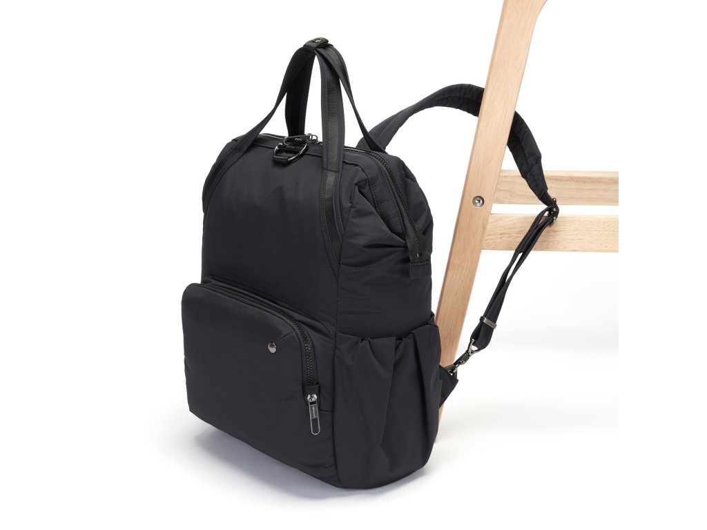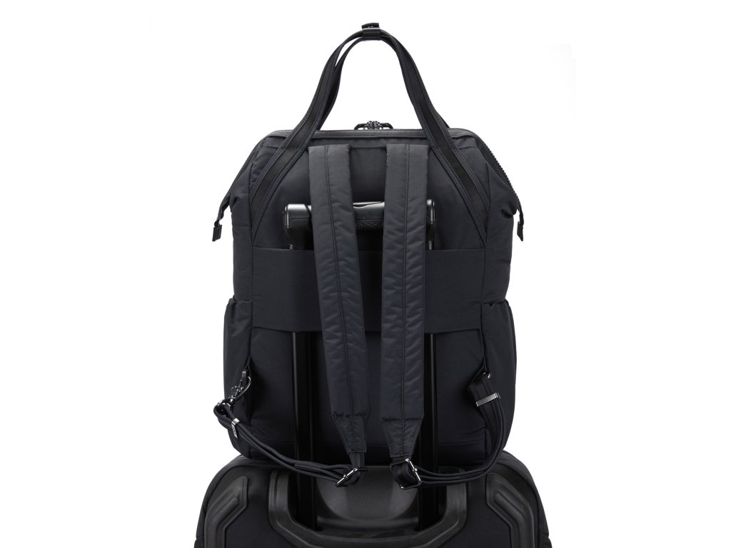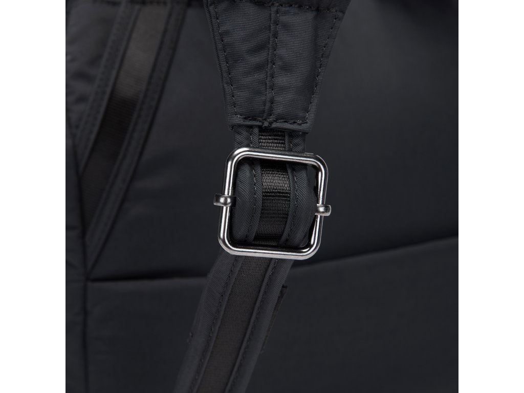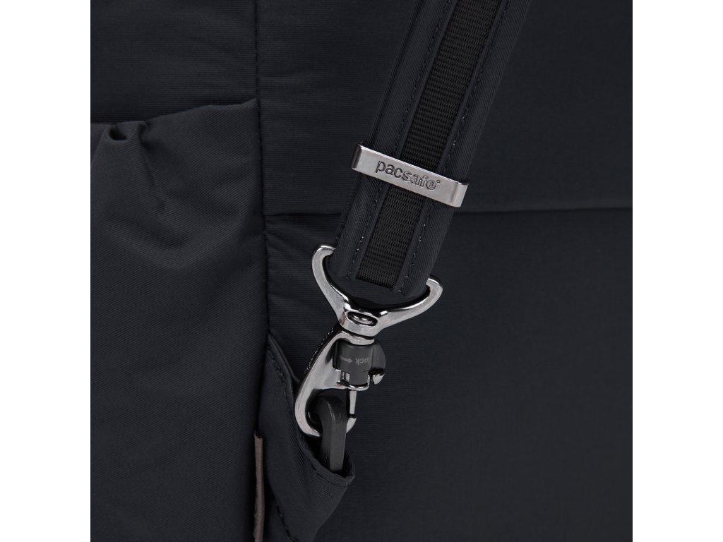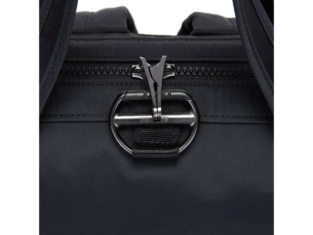 TurnNLock bezpečnostní karabina k zajištění zavazadla. eXomesh® skrytá ocelová síť chrání proti proříznutí. Carrysafe® popruhy vyztužené dvěma ocelovými lanky. RFIDsafe® kapsy chránící proti zneužití karet a dokladů. Roobar® Style zamykací systém zipů. Zabezpečené zipy proti rychlému rozepnutí. Materiál: Econyl® - recyklované nylonové sítě. Rozměry 39 x 28 x 16 cm. Hmotnost: 700 g.
