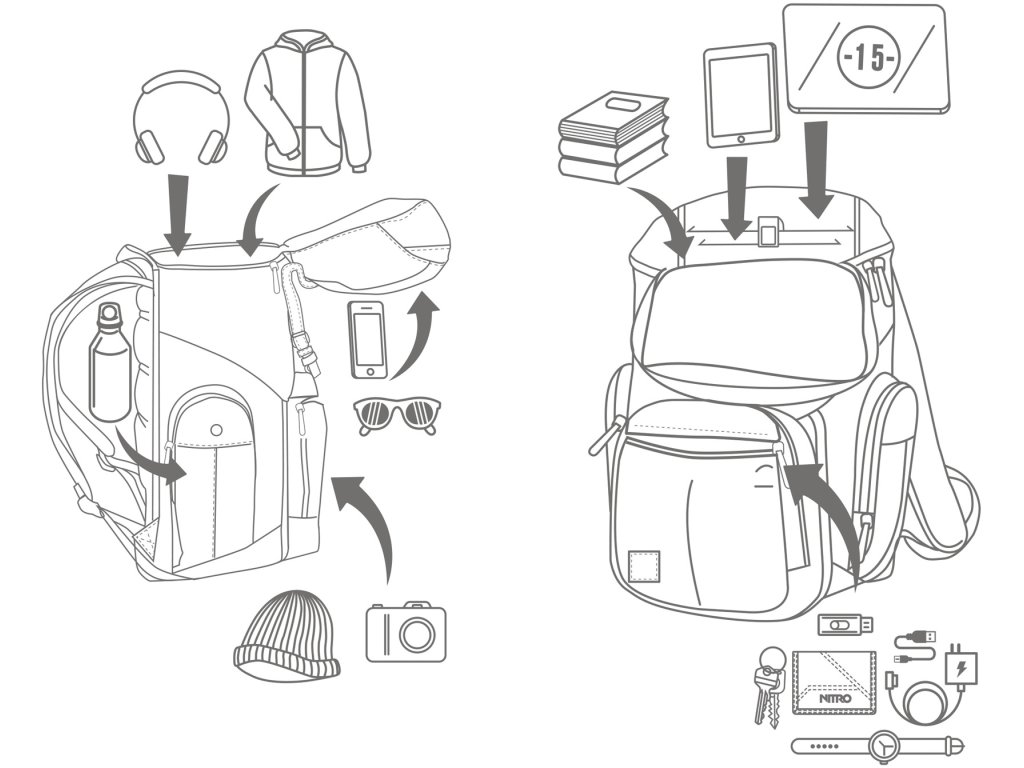 Menší bráška batohu Weekender. Objem 32 l. Fleecem vystlaná kapsa na brýle a podobně choulostivé věci, vypolstrovaná kapsa na 15" notebook, vnitřní kapsa na kabely a nabíječky, prostorná přední kapsa s organizérem. Postranní kapsy, vyztužená a prodyšná záda. Rozměry přibližně 46 x 30 x 18 cm. Hmotnost cca 850 g.