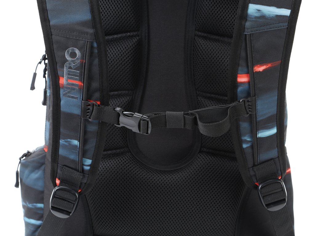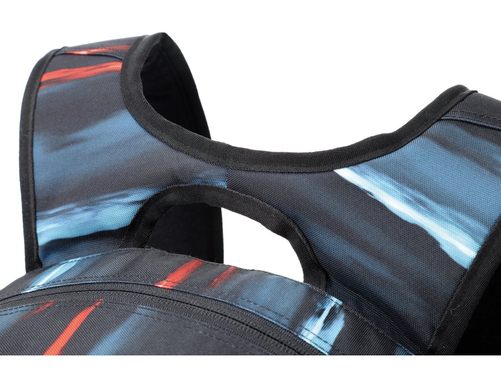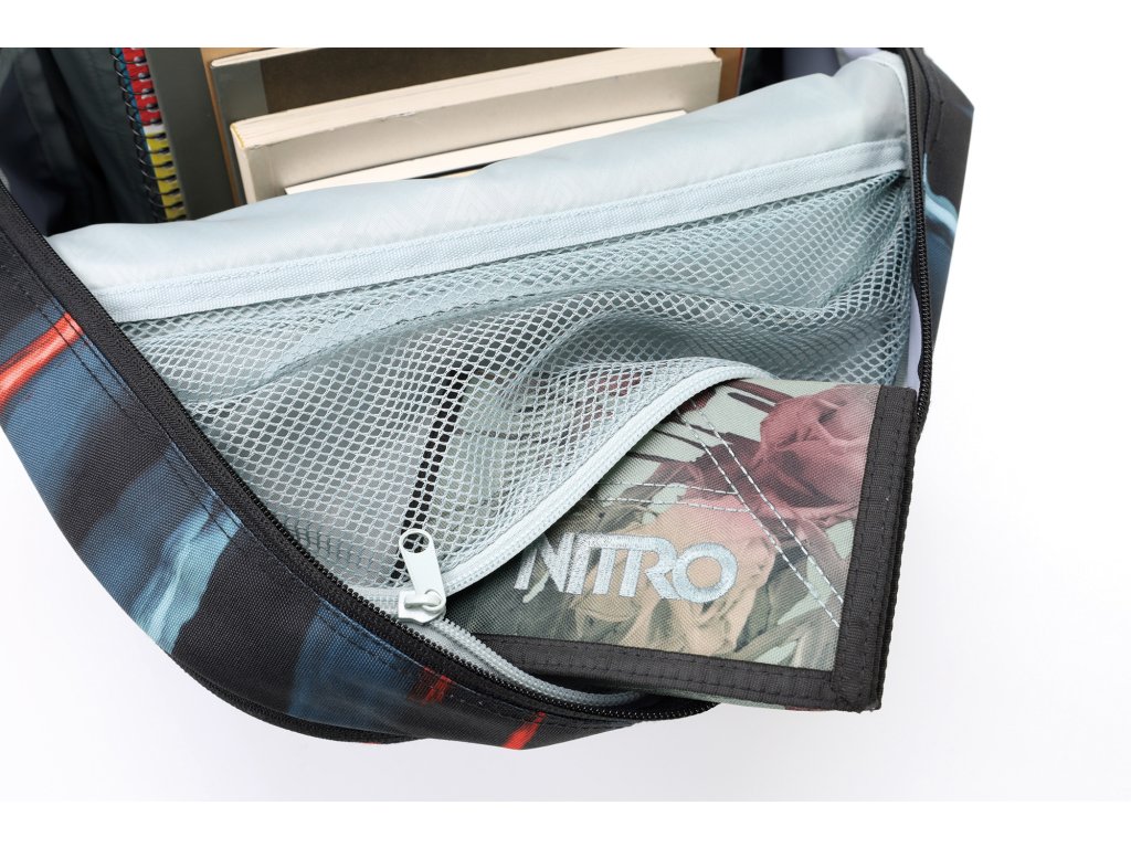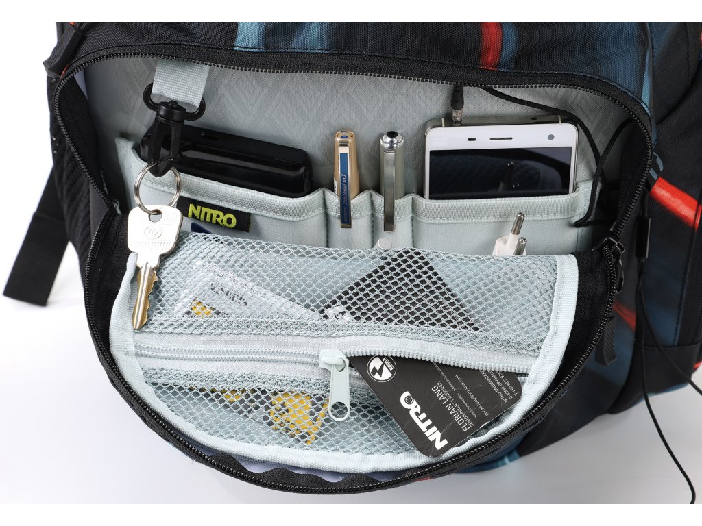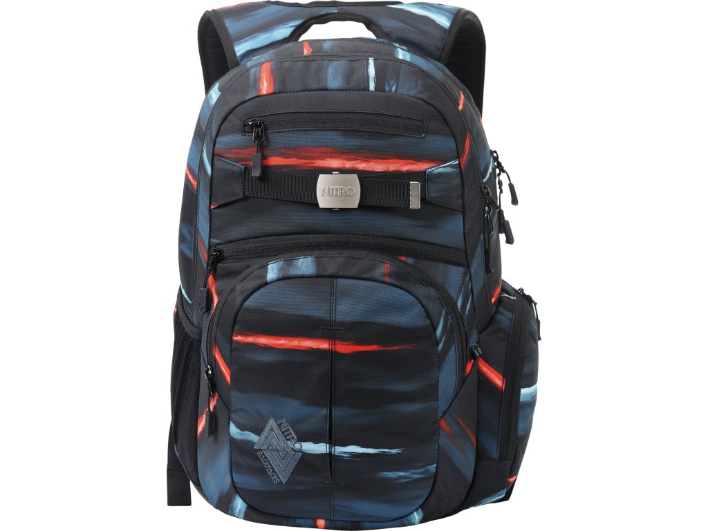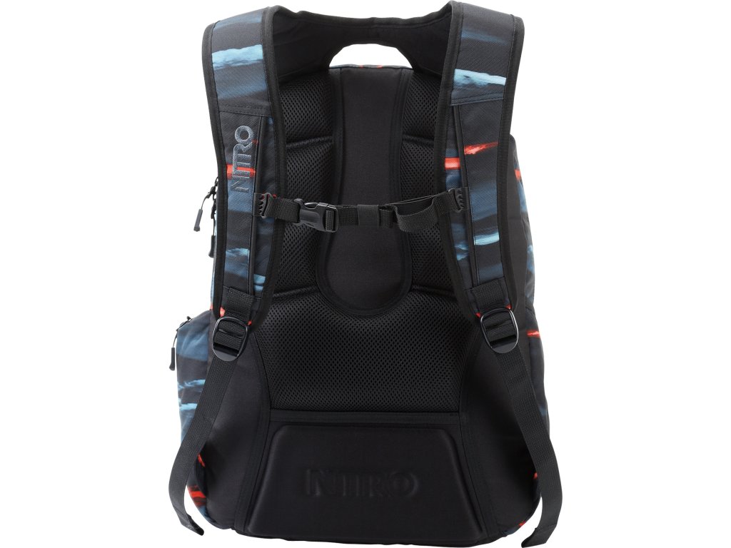 Objem 37 l. Fleecem vystlaná kapsa na brýle a podobně choulostivé věci, dvě hlavní prostorná oddělení, kapsa na tablet, vypolstrovaná kapsa na 17" notebook, popruh na nesení skateboardu, postranní kapsa na zip, postranní síťovinová kapsa na lahev.. Rozměry přibližně 52 x 38 x 23 cm. Materiál 600D polyester, hmotnost 980 g.