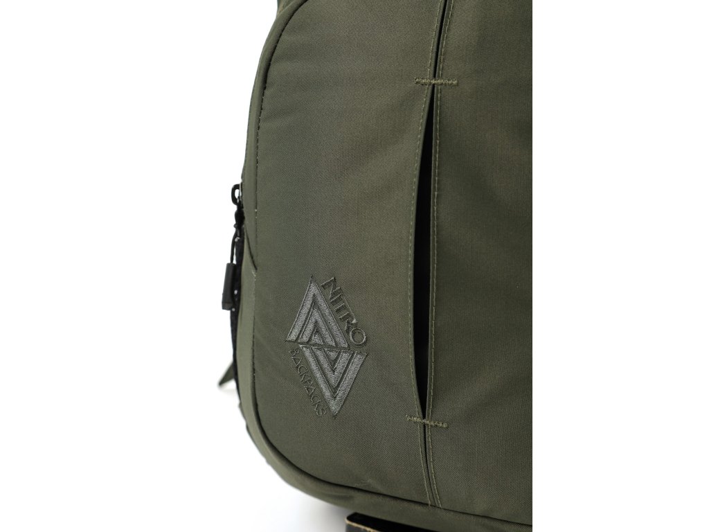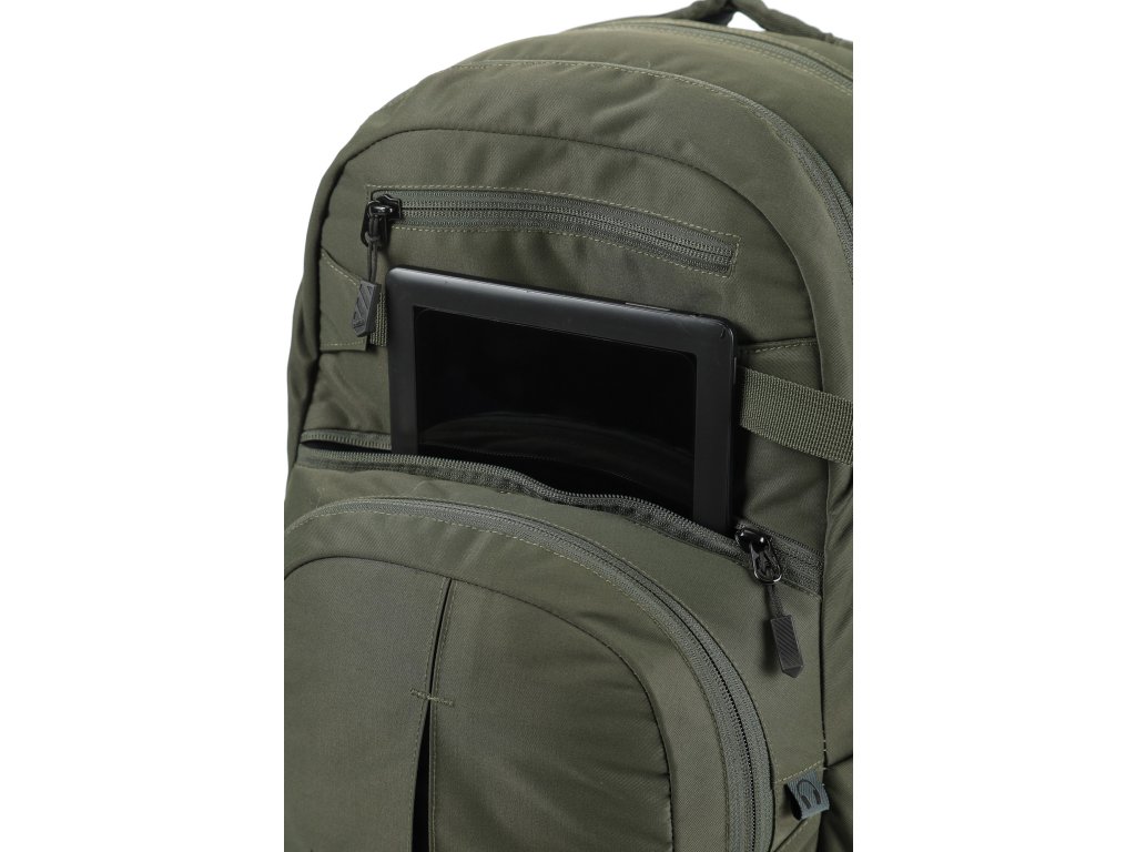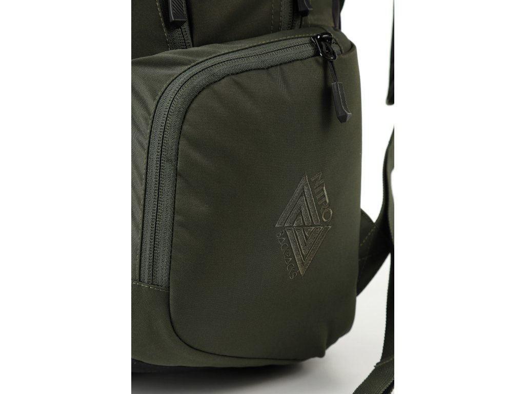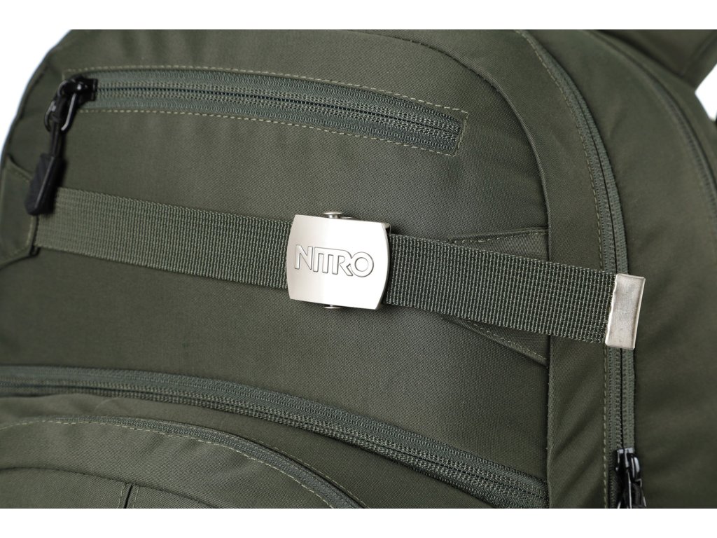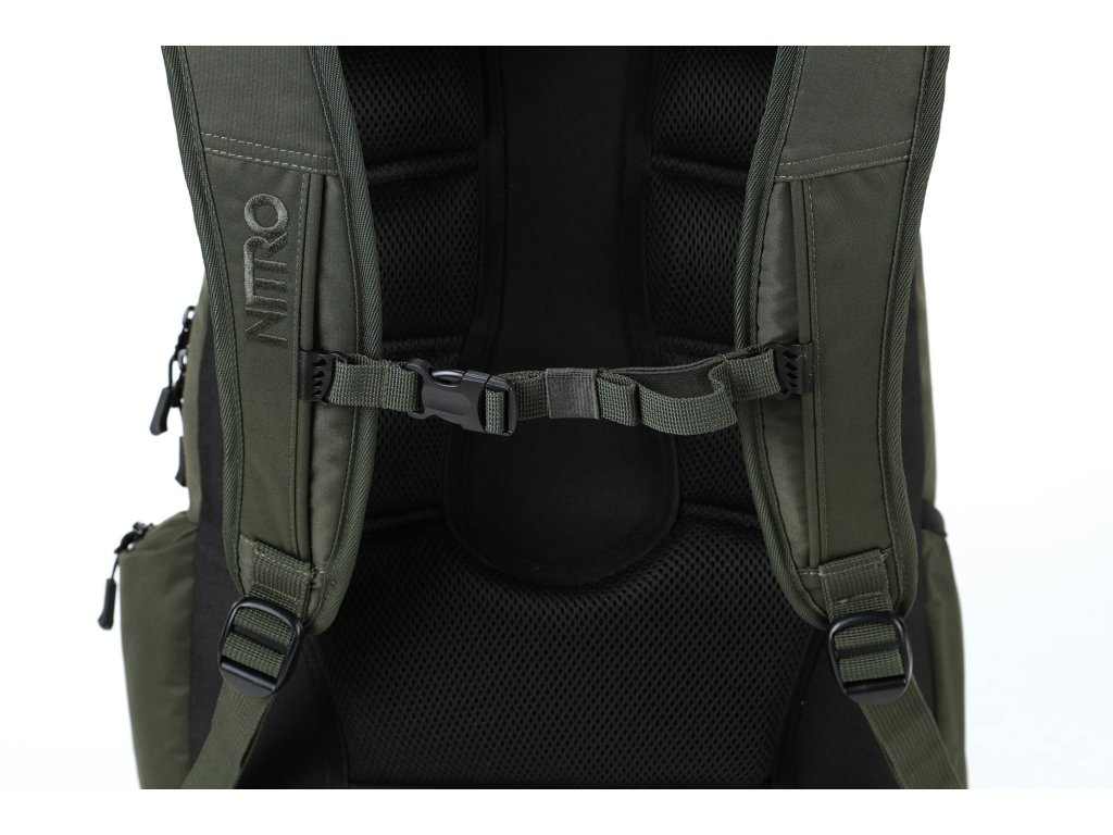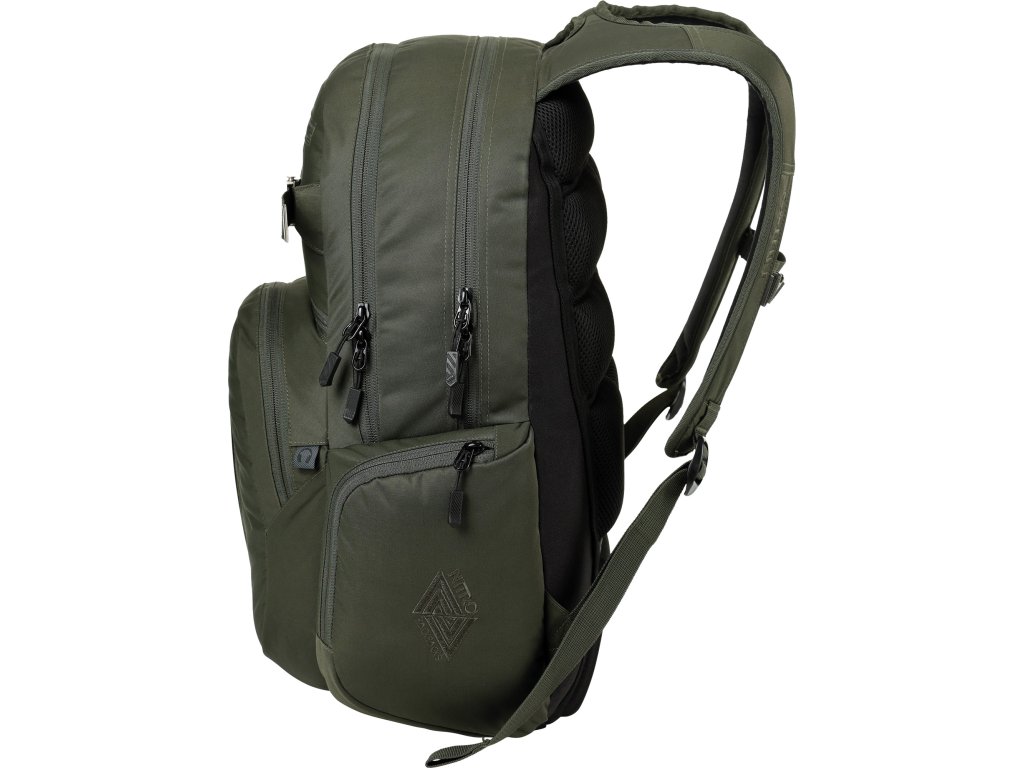 Fleecem vystlaná kapsa na brýle a podobně choulostivé věci, dvě hlavní prostorná oddělení, kapsa na tablet, vypolstrovaná kapsa na 17" notebook, popruh na nesení skateboardu, postranní kapsa na zip, postranní síťovinová kapsa na lahev. Objem 37 l. Rozměry přibližně 52 x 38 x 23 cm. Hmotnost 980 g.