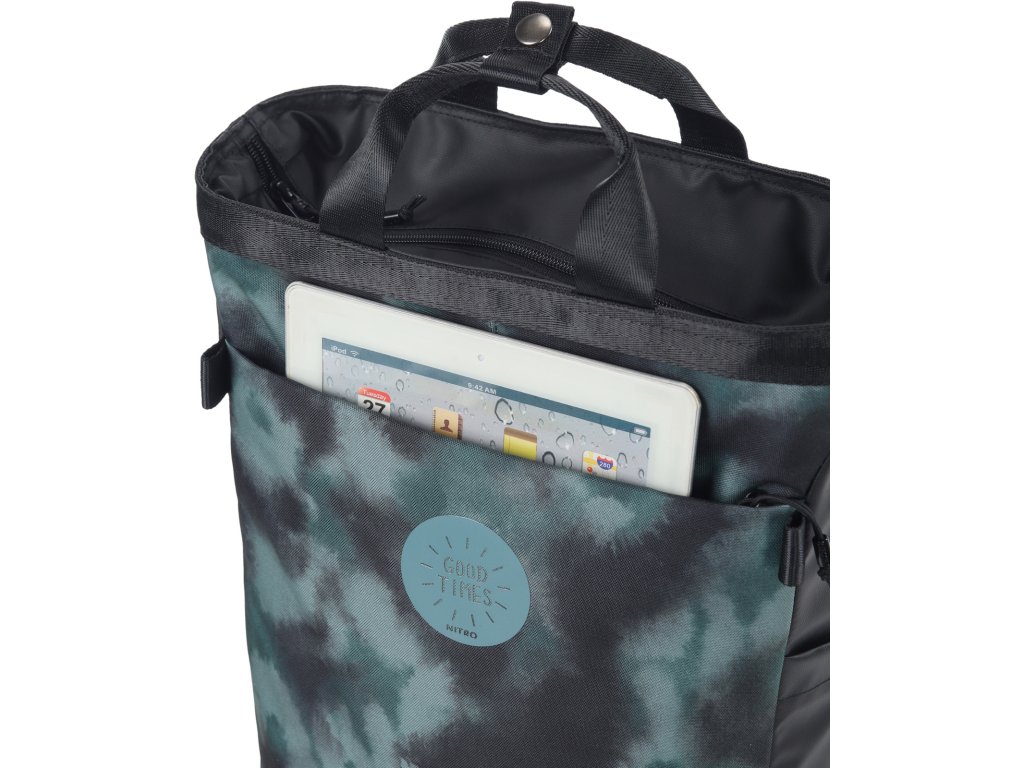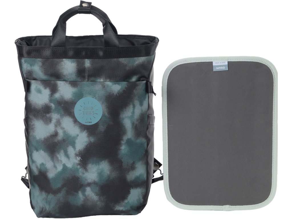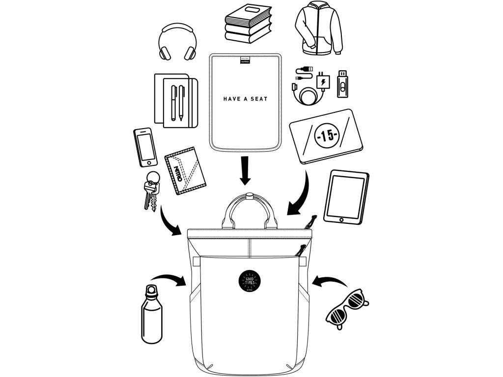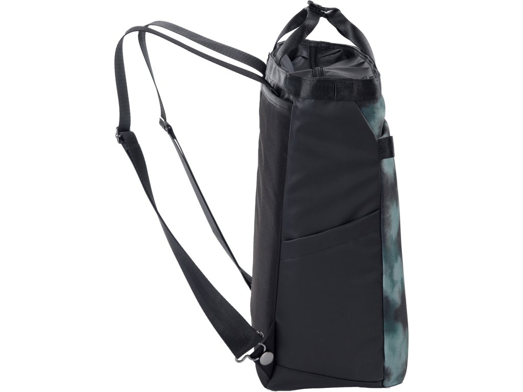 Objem 16 l. Čtyři způsoby nošení - jako batoh, jako taška do ruky, taška přes rameno (tote bag) a nebo messanger bag. Vypolstrovaná kapsa na 15" notebook, fleecem vystlaná kapsa na brýle a podobně choulostivé věci, dvě postranní kapsy třeba na lahev. Přední kapsa na zip. Měkké polstrování zad pro pohodlnější nošení batohu. Uvnitř je ukrytý polstrovaný "podprdelníček". Rozměry přibližně 39 x 28 x 15 cm. Materiál, 600D polyester. Hmotnost 550 g.