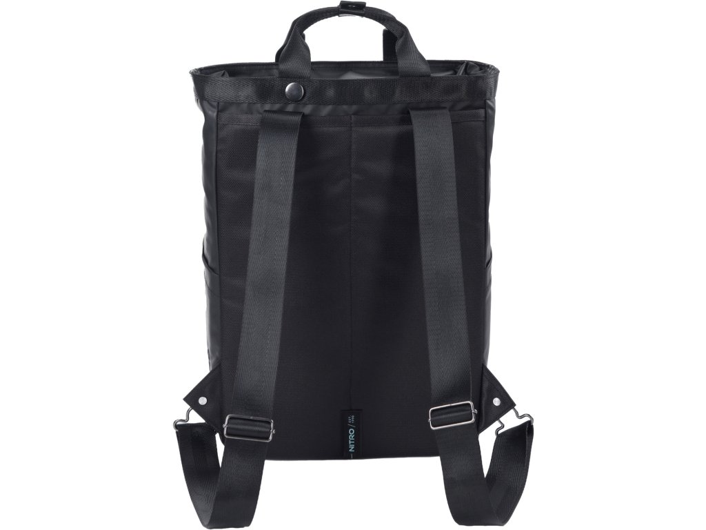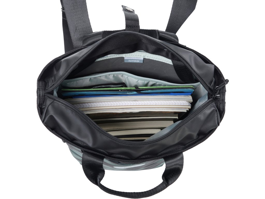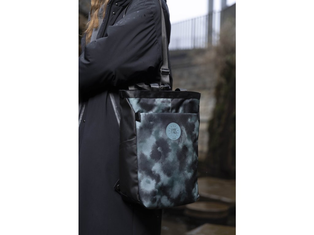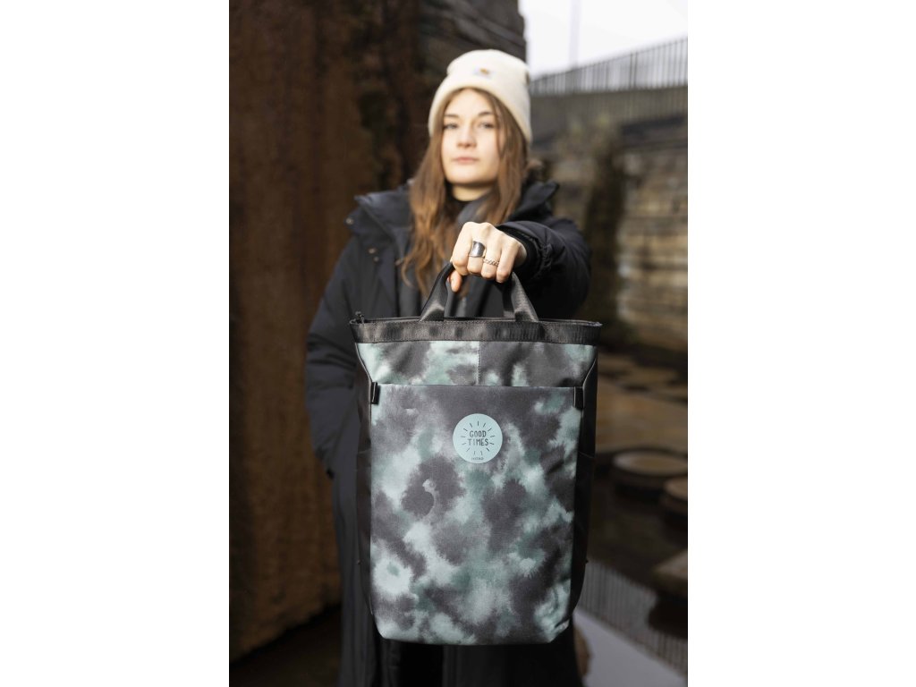 Objem 16 l. Čtyři způsoby nošení - jako batoh, jako taška do ruky, taška přes rameno (tote bag) a nebo messanger bag. Vypolstrovaná kapsa na 15" notebook, fleecem vystlaná kapsa na brýle a podobně choulostivé věci, dvě postranní kapsy třeba na lahev. Přední kapsa na zip. Měkké polstrování zad pro pohodlnější nošení batohu. Uvnitř je ukrytý polstrovaný "podprdelníček". Rozměry přibližně 39 x 28 x 15 cm. Materiál, 600D polyester. Hmotnost 550 g.