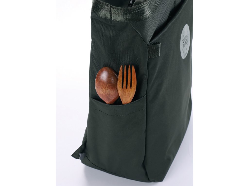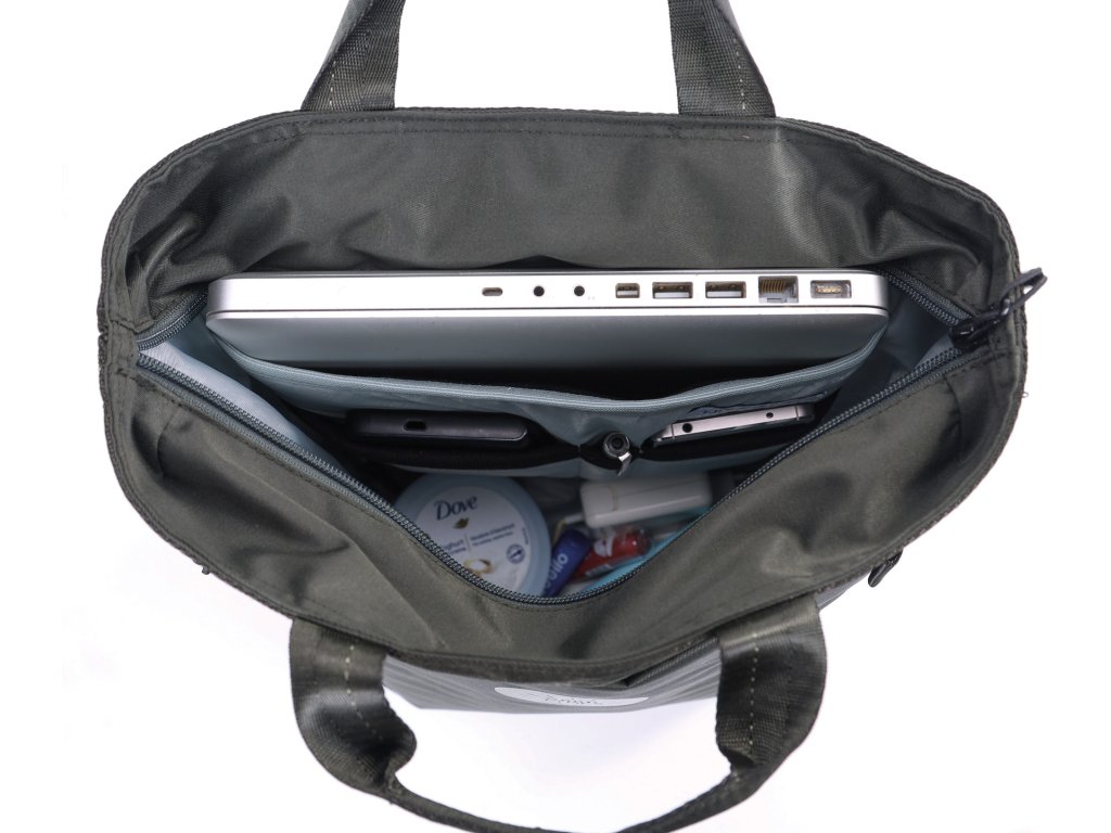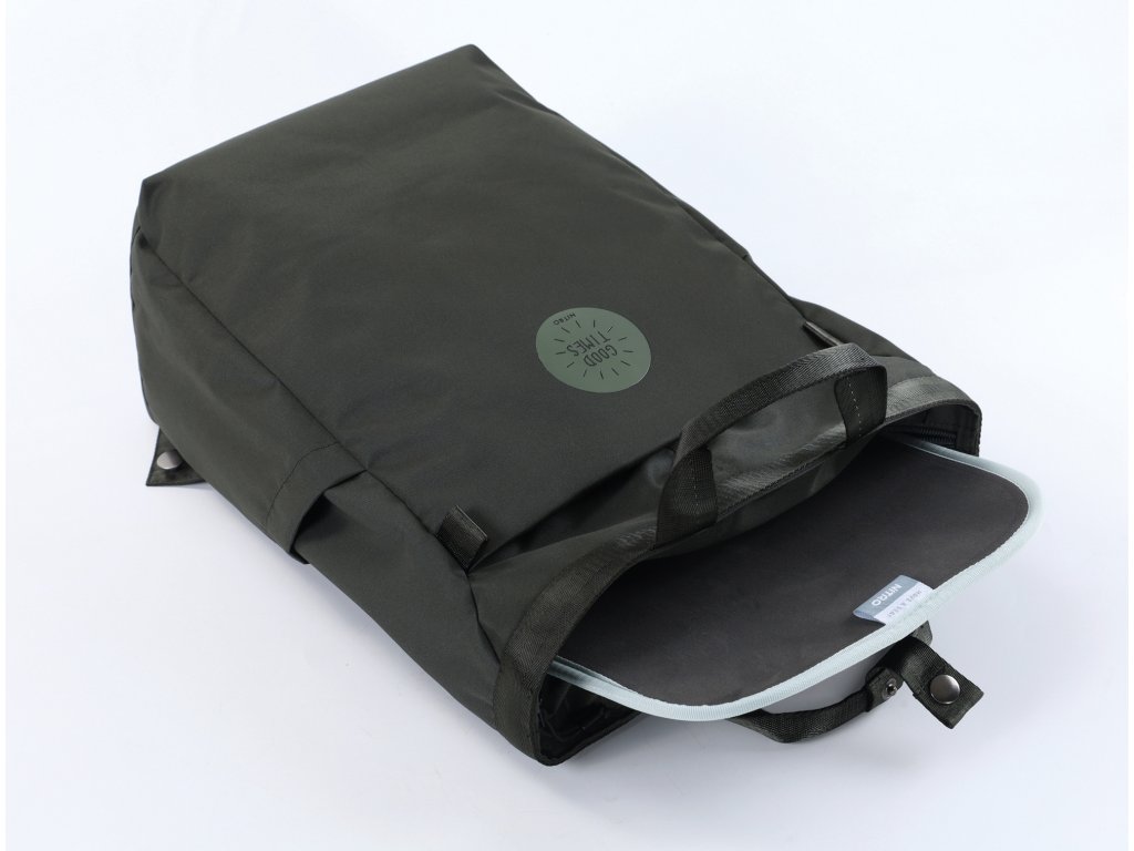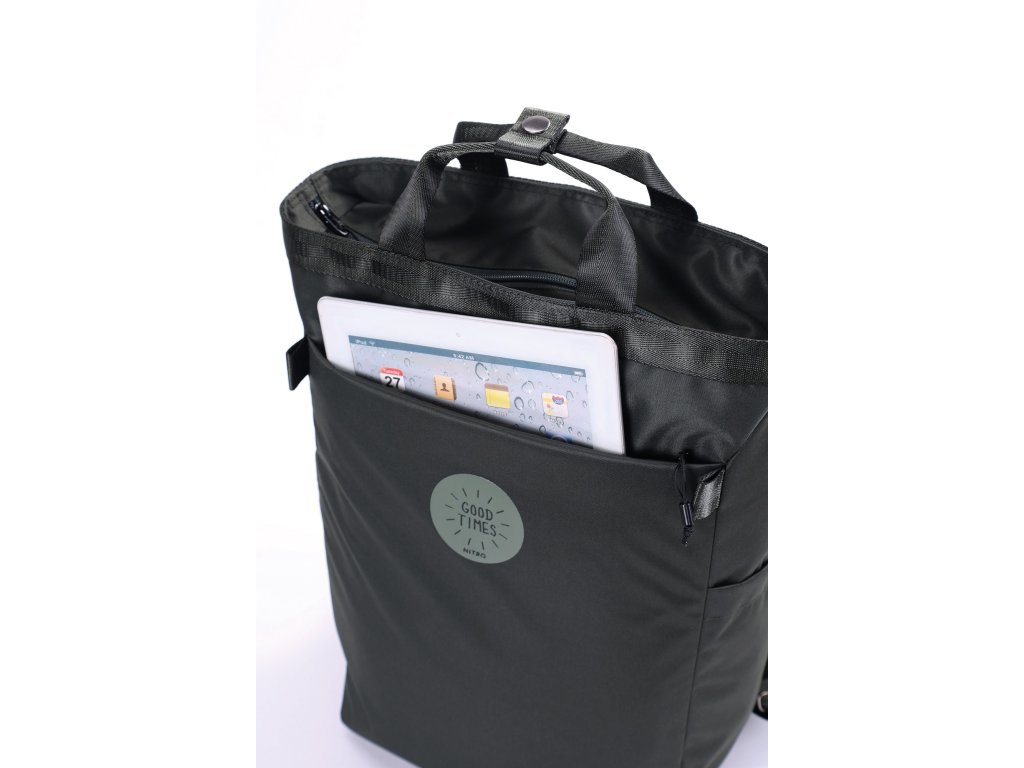 Objem 16 l. Čtyři způsoby nošení - jako batoh, jako taška do ruky, taška přes rameno (tote bag) a nebo messanger bag. Vypolstrovaná kapsa na 15" notebook, fleecem vystlaná kapsa na brýle a podobně choulostivé věci, dvě postranní kapsy třeba na lahev. Přední kapsa na zip. Měkké polstrování zad pro pohodlnější nošení batohu. Uvnitř je ukrytý polstrovaný "podprdelníček". Rozměry přibližně 39 x 28 x 15 cm. Materiál, 600D polyester. Hmotnost 550 g.