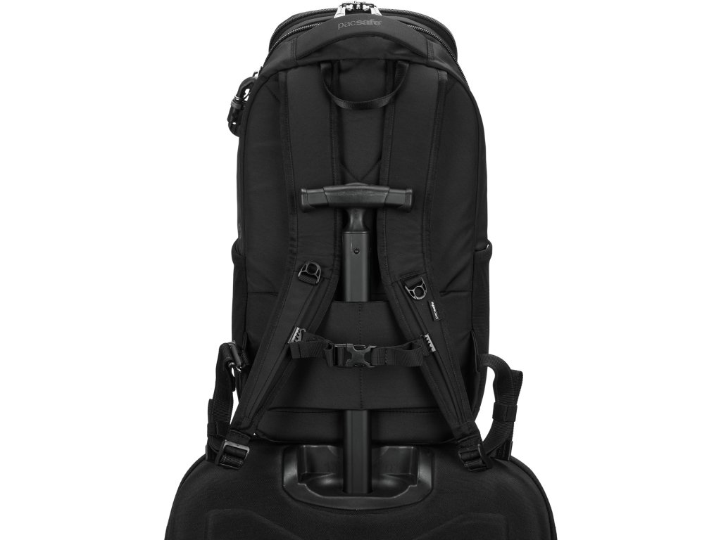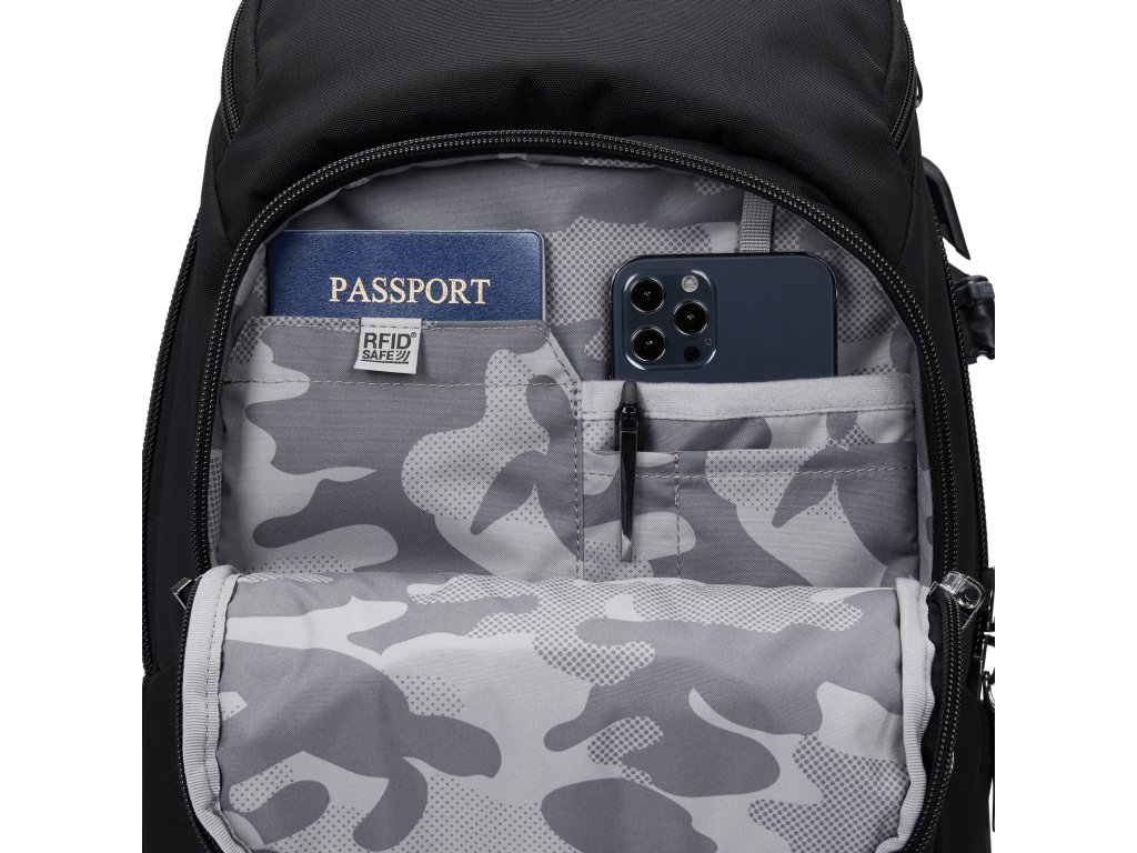 Pacsafe EXP 28L je ideální společník pro dojíždění, objevování města nebo víkendové výlety. Kompaktní design ukrývá všechny funkce, které potřebuješ: prostornou hlavní komoru, polstrovanou kapsu na 16" počítač a rychlý přístup k drobnostem v předních kapsách. Bezpečnost je samozřejmostí. Self-locking zipy, ToughZip odolné proti proděravění, PopNLock klip, Carrysafe® popruh s Dyneema® proti proříznutí, eXomesh® výztuž, Roobar™ Deluxe zámek a propletené zipy – tvoje věci zůstanou v klidu. RFID kapsy chrání pas a karty před skenováním. Praktičnost je perfektně promyšlená. Luggage slip (22 cm) na madlo kufru zajišťuje stabilitu při cestování, odnímatelný hrudní popruh a úchyty na bederní pás zvyšují pohodlí. Externí úchyty na popruzích pojmou drobnosti, například pouzdro na telefon nebo lahve. Batoh lze nosit třemi různými způsoby – jako batoh, tašku přes rameno nebo duffel. Vyroben z recyklovaného PET materiálu s vodoodpudivou úpravou – odolný, lehký a udržitelný.