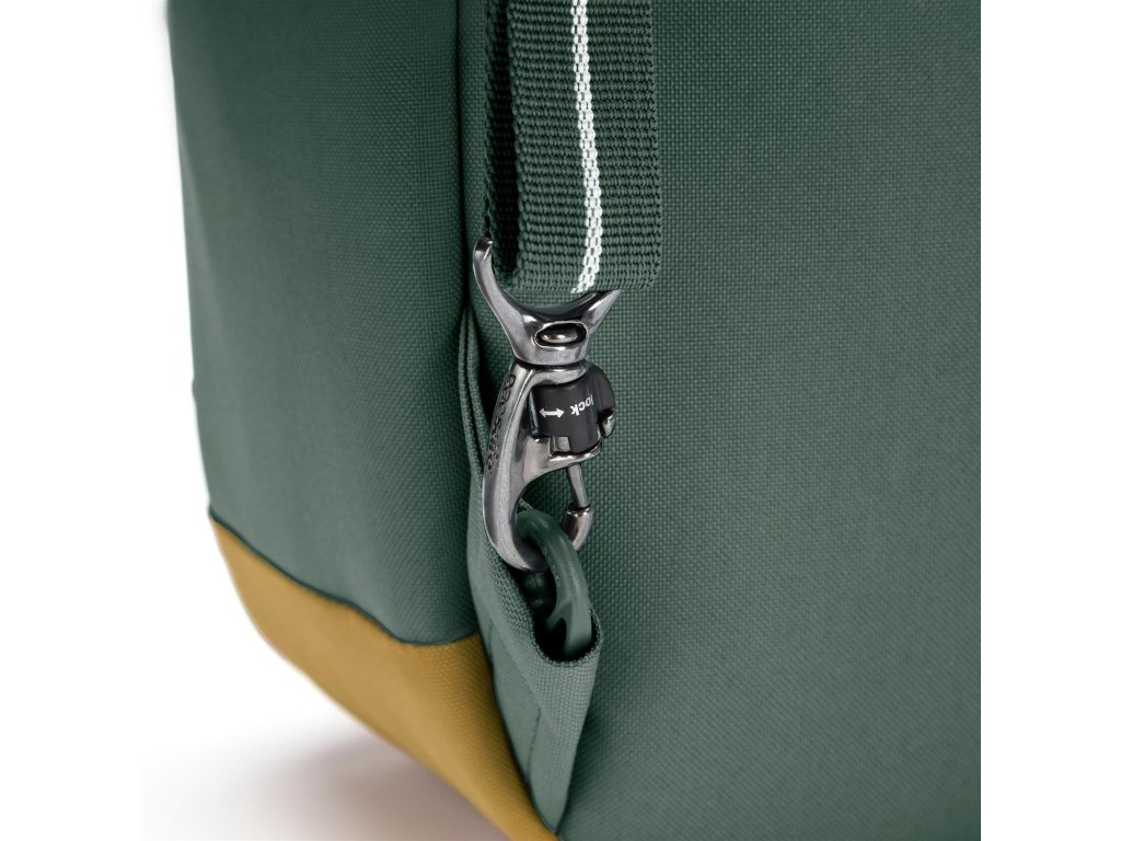 Jeden z popruhů připevňuje k tělu batohu TurnNLock zabezpečená karabina. Batoh tak můžete přivázat třeba k topení, stolu, či zábradlí a ukotvit ho proti odnesení. Zipy chrání proti rozepnutí nový systém Secure dock lock a Zip clip. Hlavní popruh Carrysafe® je proti proříznutí vyztužen vetkaným lankem z Dyneema®. Pokusy o proříznutí těla batohu hravě překazí eXomesh® slashguard - našitá síť z ocelových lanek. RFIDsafe™ kaspy zabraňující nechtěnému skenování vašich osobních údajů a zneužití platebních karet.