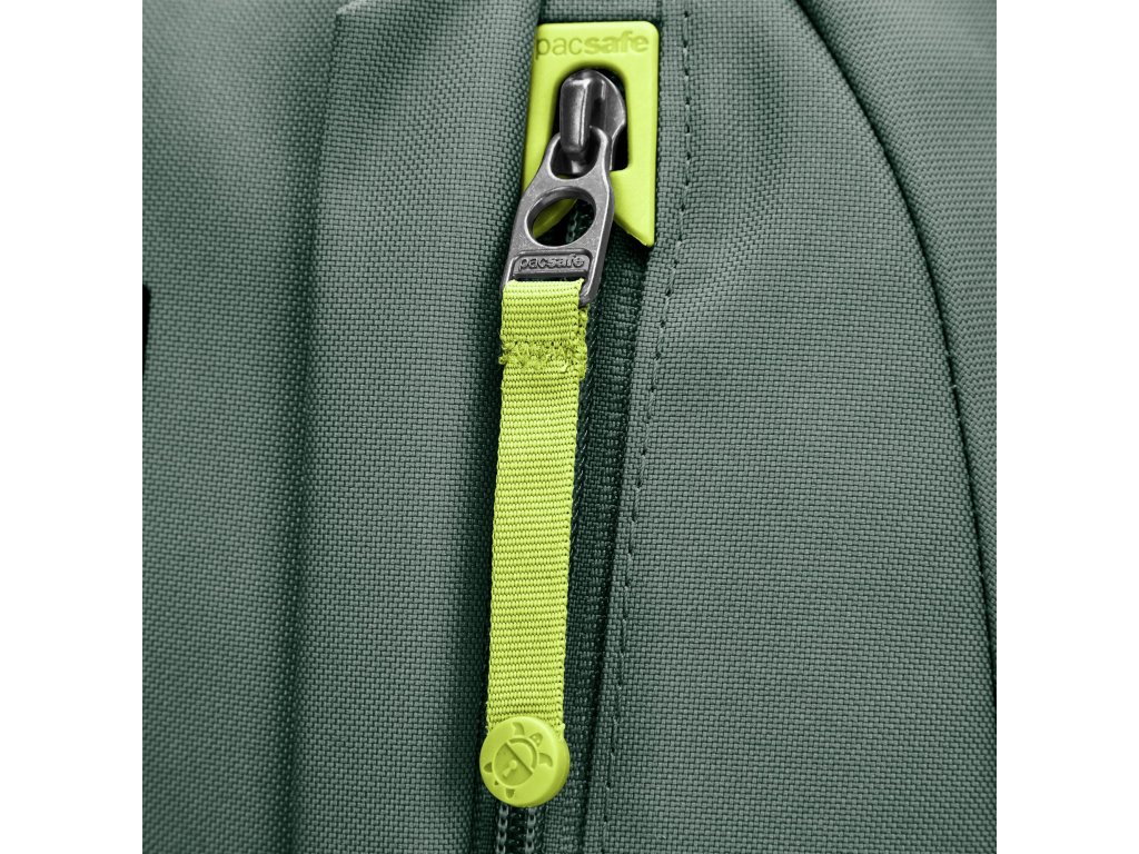 Jeden z popruhů připevňuje k tělu batohu TurnNLock zabezpečená karabina. Batoh tak můžete přivázat třeba k topení, stolu, či zábradlí a ukotvit ho proti odnesení. Zipy chrání proti rozepnutí nový systém Secure dock lock a Zip clip. Hlavní popruh Carrysafe® je proti proříznutí vyztužen vetkaným lankem z Dyneema®. Pokusy o proříznutí těla batohu hravě překazí eXomesh® slashguard - našitá síť z ocelových lanek. RFIDsafe™ kaspy zabraňující nechtěnému skenování vašich osobních údajů a zneužití platebních karet.