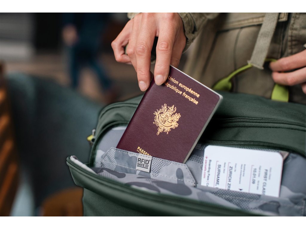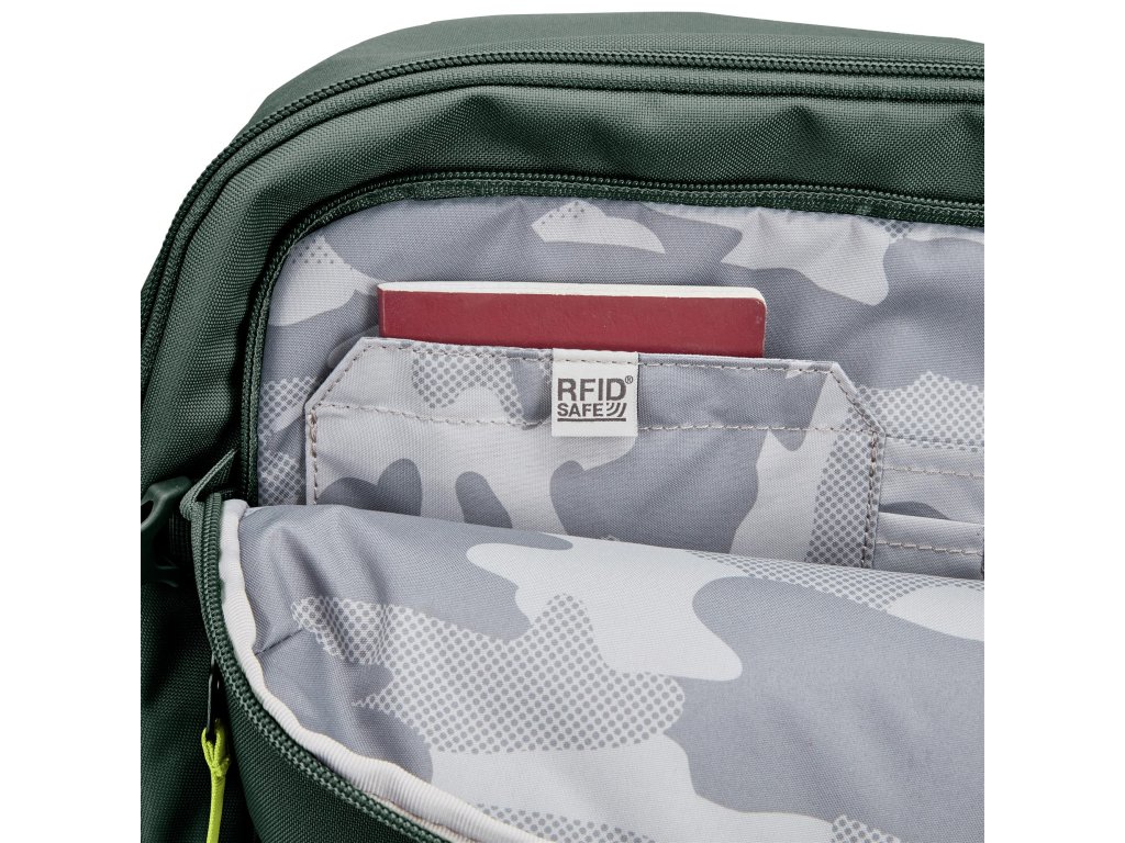 RFIDsafe™ kapsy a materiál bránící nežádoucímu skenování vašich údajů. Bezpečnostní háček TurnNLock. Popruh Carrysafe® s Dyneema®. Ochranná síť eXomesh®. Uzamykatelné jezdce zipu (jezdce s otvory pro zámek). Klip na zip.