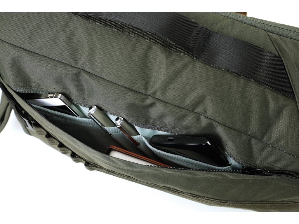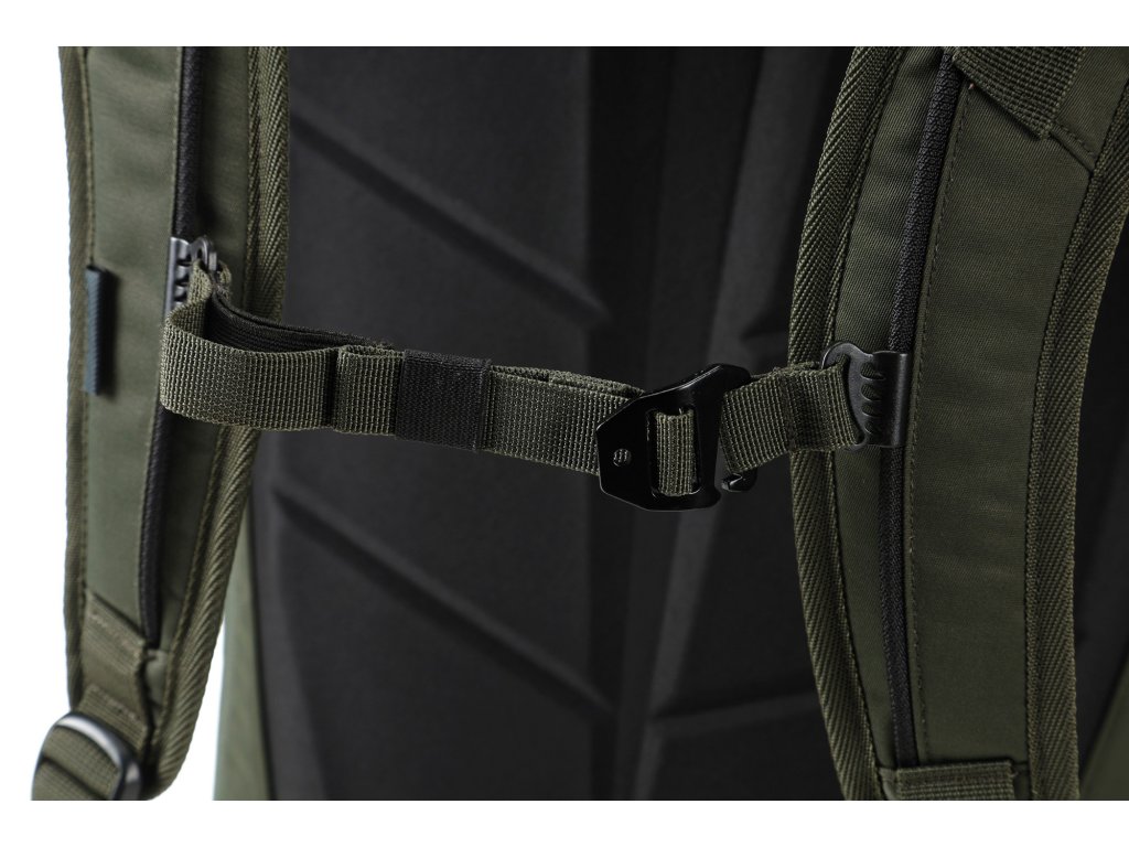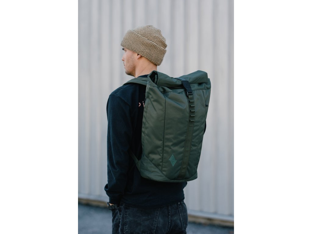 Vypolstrovaná kapsa na 15" notebook s bočním vstupem, rolovací uzavírání na kovový háček, přední kapsa s organizerem, polstrované popruhy s hrudní pásem, měkké síťovinové polstrování zad. Popruhy jdou přitáhnout k batohu aby neplandaly při nošení za boční ucho. Objem 28 l. Rozměry přibližně 47 x 30 x 12 cm, hmotnost cca 900 g.