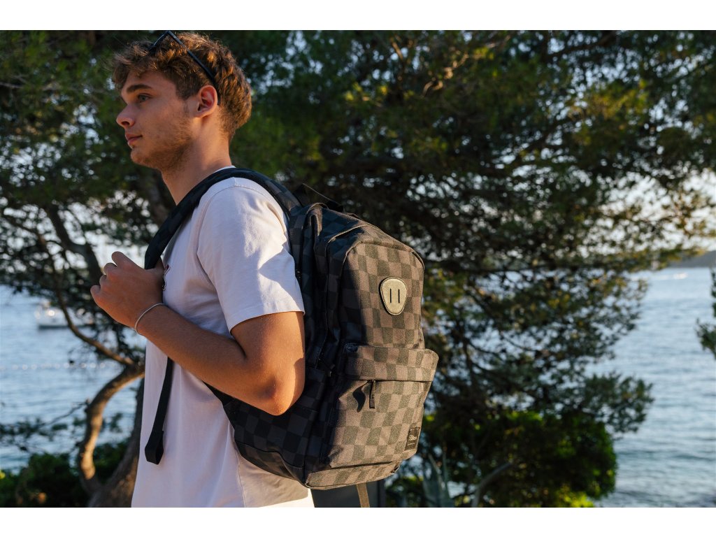 Zvětšená verze našeho oblíbeného Urban Classic. Batoh co se skvěle hodí do školy i do lesa, má dvě zapínací hlavní kapsy s integrovanou polstrovanou kapsou na 15" notebook a menší přední kapsičku na zip. Po obou stranách vybaven kapsami na lahev. Pohodlné ergo polstrované popruhy nikde netlačí. Doplňky z veganské kůže. Objem 28 l, rozměry 46 x 31 x 17 cm. Materiál 600D polyester, hmotnost 520 g.