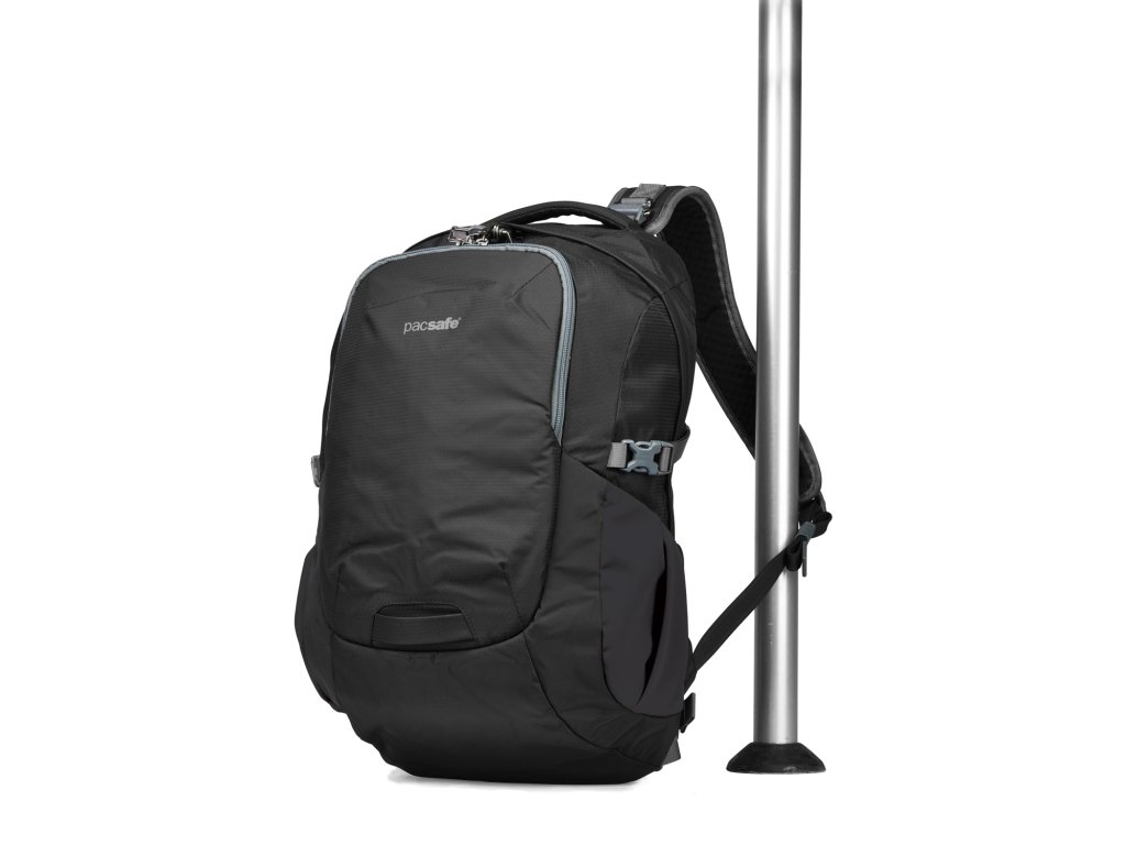 Nová generace batohů Venturesafe G3 je určena pro aktivní pohyb ve městě, na sportovištích i pro výlety do přírody. Batohy jsou vzdušné, přesto dostatečně zabezpečené proti nenechavcům. Rozbalte to s tímto středně velkým zabezpečeným batohem. V jeho prostorném vnitřku můžete přenášet počítač, vaše běžné denní potřeby i sešity a knihy, všechno pěkně zabezpečené zamykatelnými zipy a popruhem, díky kterému se dají připevnit k jakémukoli kotvícímu bodu. Výbava: Prostor pro hydratační vak. Nastavitelný prsní pás. Očka a poutka na zavěšení drobných kapes či lahví. Vnější kompresní popruhy. Kapsa na 15palcový notebook. Nastavitelný, odnímatelný bederní pás. Vnitřní karabinka na klíče a peněženku. Gumová poutka na pera a tužky. Kapsa na láhev. Zabezpečení: Vaše čipové karty a doklady jsou před možným zneužitím bezpečně uloženy v RFIDsafe® kapse. Batoh před krádeží chrání PopNLock bezpečnostní přezka, díky které ho lze rychle připoutat ke stolu, topení nebo zábradlí. Tolik "oblíbenému" přeřezání popruhů zabraňují 2 zapletená lanka z dyneemy v systému Carrysafe®. Přední panel je chráněn sítí ocelových lanek eXomesh®. Vnitřek batohu dále chrání zipy zajištěné pomocí unikátního systému Roobar® Sport. Všechny zipy jsou zabezpečené proti náhlému a nechtěnému otevření. Vnější materiál: 100D Nylon Geo diamond ripstop. Podšívka: 200D Polyester. Rozměry: 48 x 29 x 24 cm. Hmotnost: 0,9 kg. Objem: 28 l.