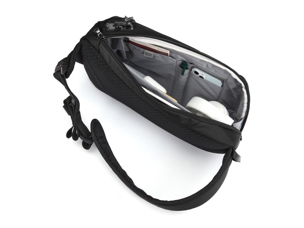 Velká taška přes rameno s jedním popruhem, kterou lze nosti na zádech i na hrudi. Dostatečně velká, aby pojmula až 10" tablet. Vnitřní organizéry pro rychlý přístup k vašim věcem. Očko na klíče s karabinkou. PopNLock bezpečnostní přezka rychle a spolehlivě odepne a zamkne popruh. eXomesh® skrytá ocelová síť chrání proti proříznutí. Carrysafe® popruhy vyztužené dvěma ocelovými lanky. RFIDsafe® kapsa chránící proti zneužití karet a dokladů. Roobar® Sport zamykací systém zipů.