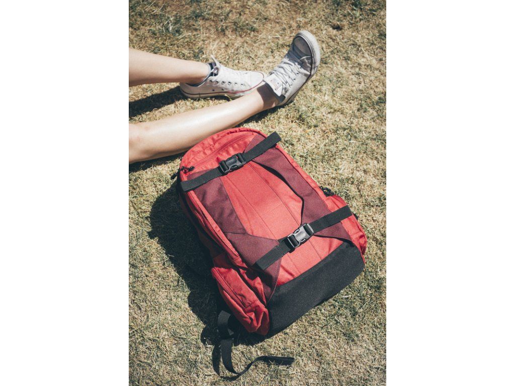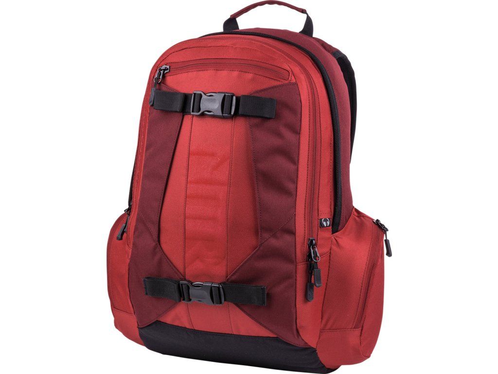 Textilní batoh. Vypolstrovaná kapsa na 15" notebook, fleecem vystlaná kapsa na brýle a podobně choulostivé věci, organizér, objemnější postraní kapsy, jedna s uzpůsobením na láhev, popruhy pro nesení snowboardu. Rozměry přibližně 50 x 33 x 19 cm. Objem 29L. Material 600D polyester, hmotnost 760 g.