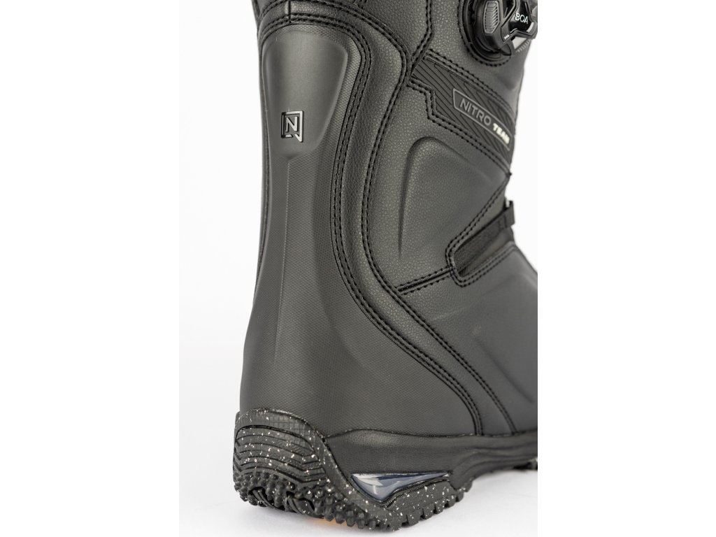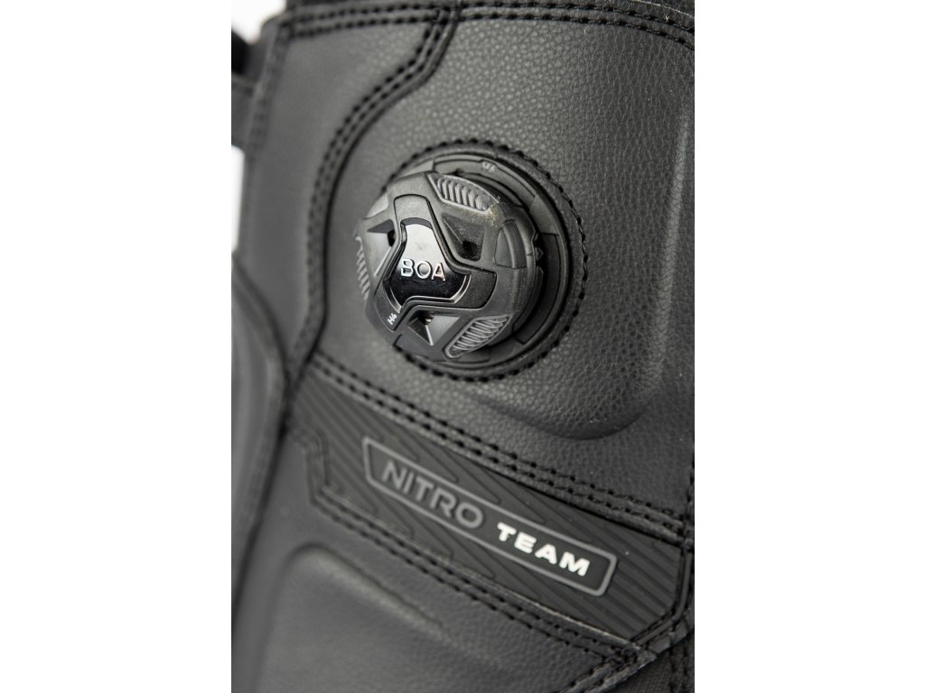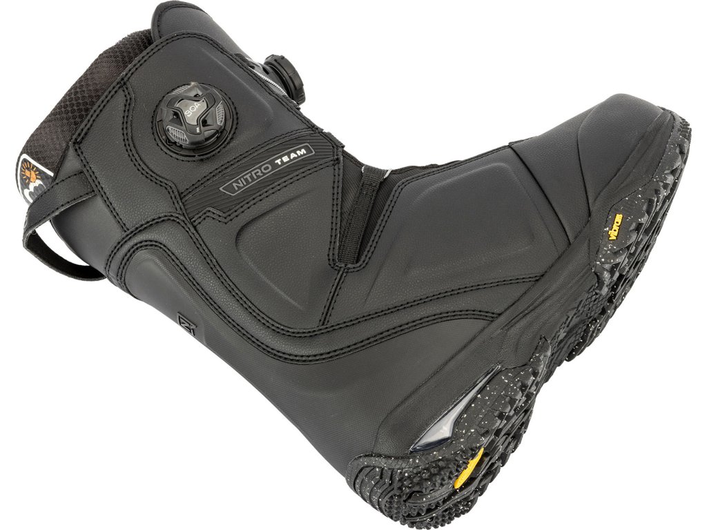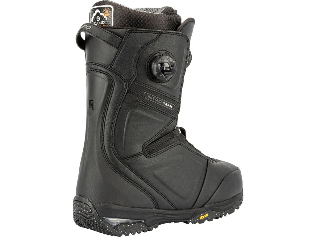 Nitro Team jsou považovány za nejvšestrannější boty na trhu, sednou jezdcům všech velikostí i tvarů. Náš team na nich tvrdě maká a jeho výsledky to potvrzují. Boty Nitro Team jsou jasnou volbou jak profíků, tak hobby jezdců, kvůli pohodlí, univerzální pružnosti a léty prověřenému výkonu. Podrážka VIBRAM ECOSTEP pro lepší trakci i na kluzkém povrchu, je extrémně odolná. Vzduchové tlumení pod patou šetří vaše nohy a tak můžete jezdit od prvního lana až do večerka. Přemodelovaná vnitřní botička Cloud 9 (tepelně tvarovatelná), chránící vaše nohy před nárazy pomocí polštářků z D3O®, má perfektní termoizolační vlastnosti, 3D tvarovaný jazyk i oblast paty. Její přední panel Flex Toe zajišťuje dostatek prostoru pro prsty a vylepšená Ortholite® stélka o dvojí hustotě materiálu se zvýšenou oporou paty dodá tvé jízdě na jistotě a pohodě, navíc je antibakteriální a dá se prát. ILS šněrování vnitřní botky s Re/Lace zámkem se dá kdykoli bez problémů dotáhnout. Základem pořádného snowboardingu jsou ale nohy v teple. Stará se o to mimo jiné Therminator Shield, fólie, která chrání chodidlo. Teplo zůstává uvnitř a chlad nemá šanci. Team jsou boty, které dovezly Eero Ettalu až ke statusu legendy a Marcuse Klevelanda na trůn krále Instagramu. * VIBRAM® PODRÁŽKA VYROBENÁ Z VIBRAM® ECOSTEP™, EVA MEZIPODEŠEV * TLUMENÍ AIR DAMPENING * TERMOIZOLAČNÍ VRSTVA THERMINATOR SHIELD * ZPEVNĚNÍ HŘBETU BORY ARMORED SPINE * FLEX LINK DESIGN * DUAL ZONE BOA® FIT SYSTÉM, BAIL OUT SYSTÉM * TEPELNĚ TVAROVATELNÁ VLOŽKA CLOUD 9 * PAMĚŤOVÉ PANELY Z LATEXU * VYLEPŠENÁ INTEGROVANÁ PODPORA KOTNÍKU * ILS UTAHOVÁNÍ VNITŘNÍ BOTIČKY, RE/LACE ZÁMEK UTAHOVÁNÍ BOTIČKY * ORTHOLITE®HIGH CUP STÉLKA Z MATERIÁLU DVOU HUSTOT * TVRDOST: 8.
