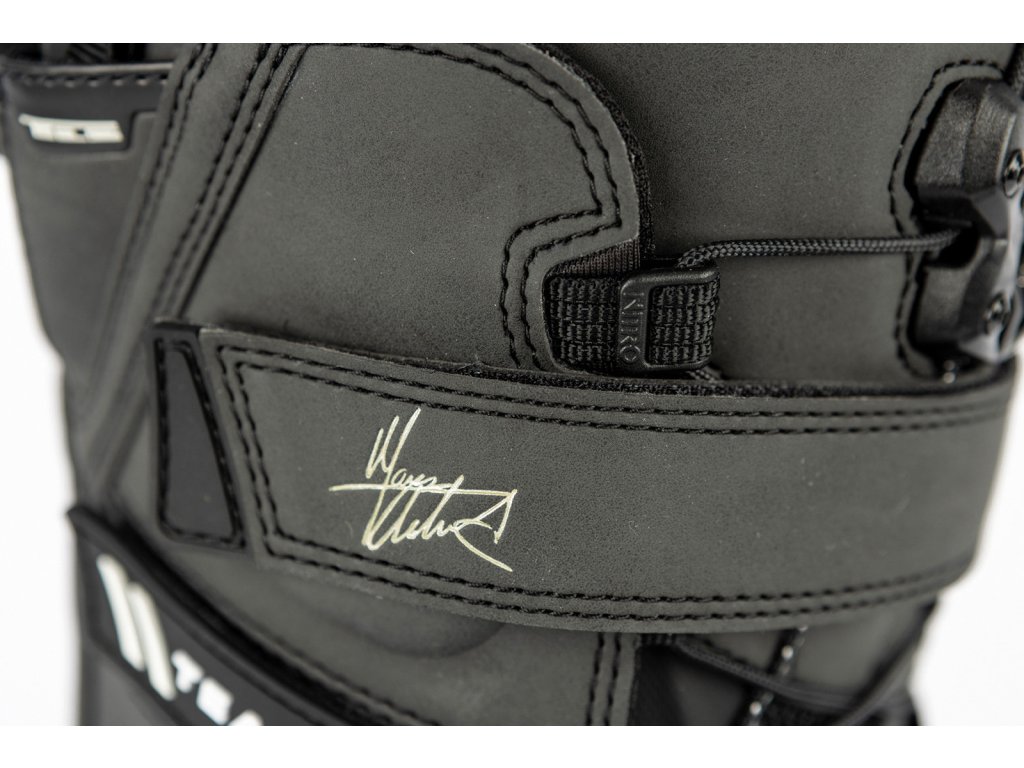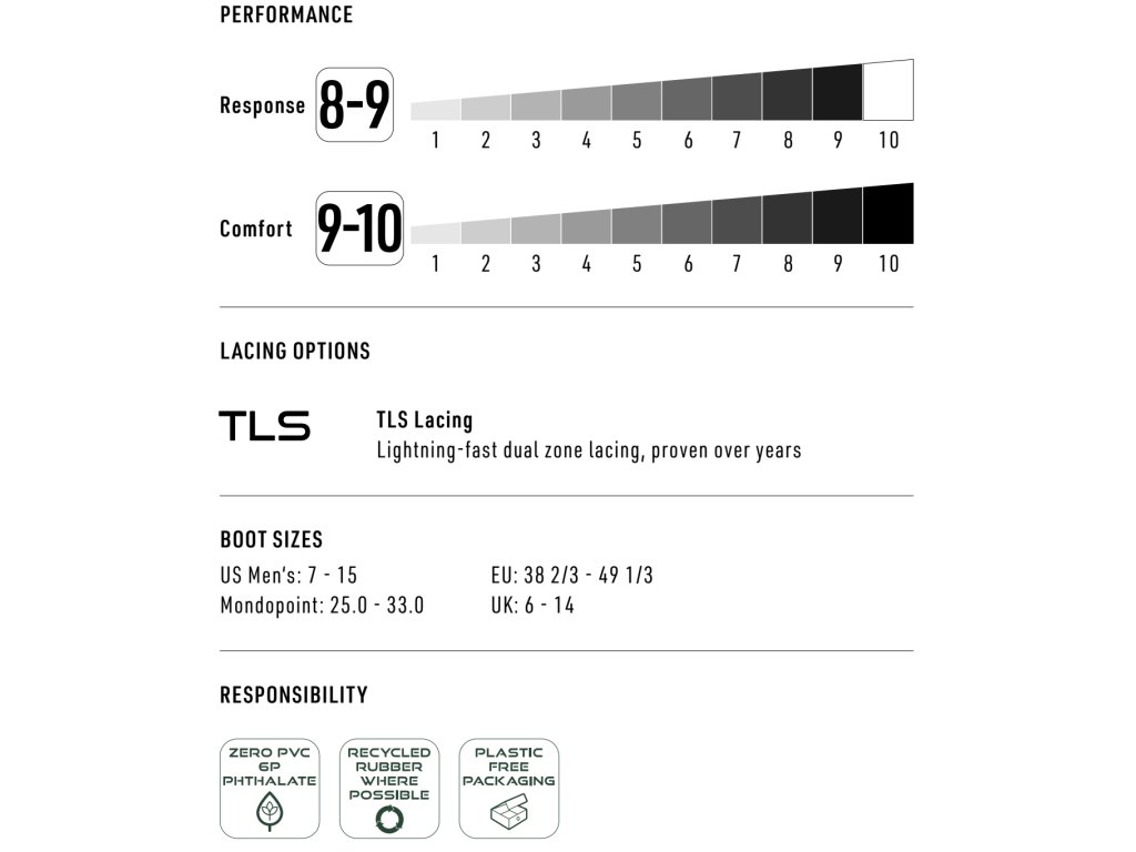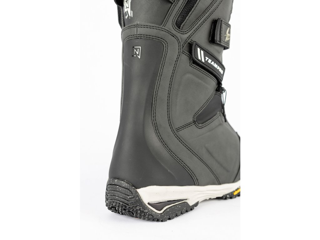 Nitro Team Pro vznikly pod taktovkou našeho severského borce Marcuse Klevelanda, který od bot vyžaduje pohodlnou tvrdost. Oproti osvědčeným Nitro Team je tenhle model vybaven holenním páskem, Power Strapem, kterým si můžeš botu pořádně dotáhnout a zvýšit tím o stupínek jejich tuhost. Ale taky nemusíš. Team Pro jsou považovány za nejvšestrannější boty na trhu, sednou jezdcům všech velikostí i tvarů. Náš team na nich tvrdě maká a jeho výsledky to potvrzují. Boty Nitro Team Pro jsou jasnou volbou jak profíků, tak hobby jezdců, kvůli pohodlí, univerzální pružnosti a léty prověřenému výkonu. Podrážka VIBRAM ECOSTEP pro lepší trakci i na kluzkém povrchu, je extrémně odolná. Vzduchové tlumení pod patou šetří vaše nohy, a tak můžete jezdit od prvního lana až do večerka. Špička boty je vyrobena z prvotřídního materiálu Endure® Gravity Foam, který je až o 50 % lehčí než konvenční guma, zachovává si tuhost za nízkých teplot, vydrží věky i ve vlhkém a nehostinném hoském prostředí, nepraská a je recyklovatelný. Přemodelovaná vnitřní botička Cloud 9 (tepelně tvarovatelná), chránící vaše nohy před nárazy pomocí polštářků z D3O®, má perfektní termoizolační vlastnosti, 3D tvarovaný jazyk i oblast paty. Její přední panel Flex Toe zajišťuje dostatek prostoru pro prsty a vylepšená Ortholite® stélka o dvojí hustotě materiálu se zvýšenou oporou paty dodá tvé jízdě na jistotě a pohodě, navíc je antibakteriální a dá se prát. ILS šněrování vnitřní botky s Re/Lace zámkem se dá kdykoli bez problémů dotáhnout. Základem pořádného snowboardingu jsou ale nohy v teple. Stará se o to mimo jiné Therminator Shield, fólie, která chrání chodidlo. Teplo zůstává uvnitř a chlad nemá šanci. Letošní model jsme vybavili ochrannou légou na zip, která brání vniknutí sněhu a vlhkosti do útrob boty a přispívá tak k ještě lepšímu komfortu. Team jsou boty, které dovezly Eero Ettalu až ke statusu legendy a Marcuse Klevelanda na trůn krále Instagramu. * VIBRAM® PODRÁŽKA VYROBENÁ Z VIBRAM® ECOSTEP™, EVA MEZIPODEŠEV * TLUMENÍ AIR DAMPENING * TERMOIZOLAČNÍ VRSTVA THERMINATOR SHIELD * ZPEVNĚNÍ HŘBETU BOTY ARMORED SPINE * FLEX LINK DESIGN * 45° LACEGLIDER * POWER STRAP * ZPEVNĚNÁ ENDURE® GRAVITY FOAM ŠPIČKA * UTAHOVÁNÍ TLS TWIN LACING SYSTÉM, TVAROVANÁ TLS TÁHLA * BAIL OUT SYSTÉM * TEPELNĚ TVAROVATELNÁ VLOŽKA CLOUD 9 * VYLEPŠENÁ INTEGROVANÁ PODPORA KOTNÍKU * OCHRANNÁ LÉGA NA ZIP * ILS UTAHOVÁNÍ VNITŘNÍ BOTIČKY, RE/LACE ZÁMEK UTAHOVÁNÍ BOTIČKY *NOVINKA !! ORTHOLITE®HIGH CUP STÉLKA Z MATERIÁLU DVOU HUSTOT * TVRDOST: 8-9.