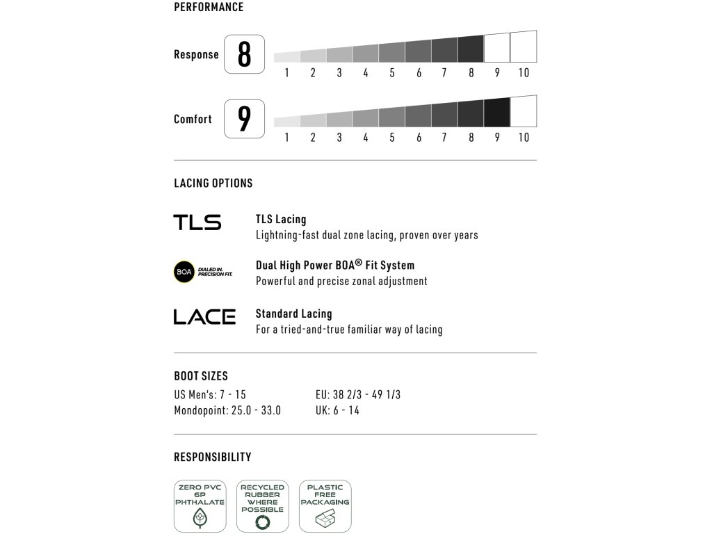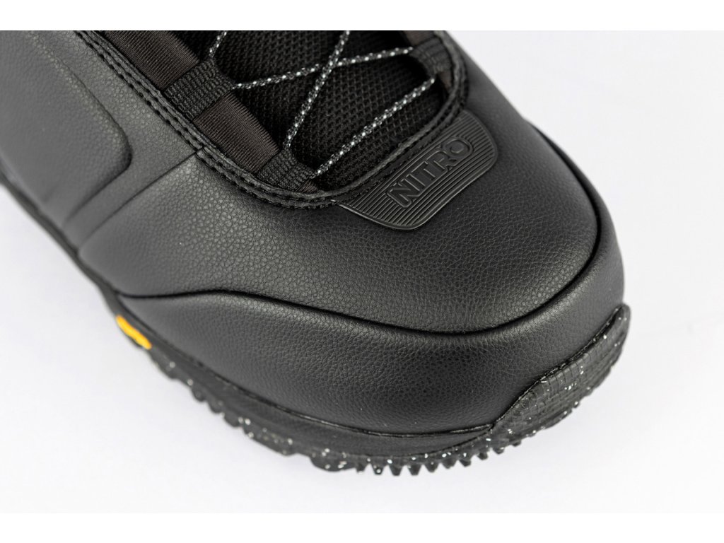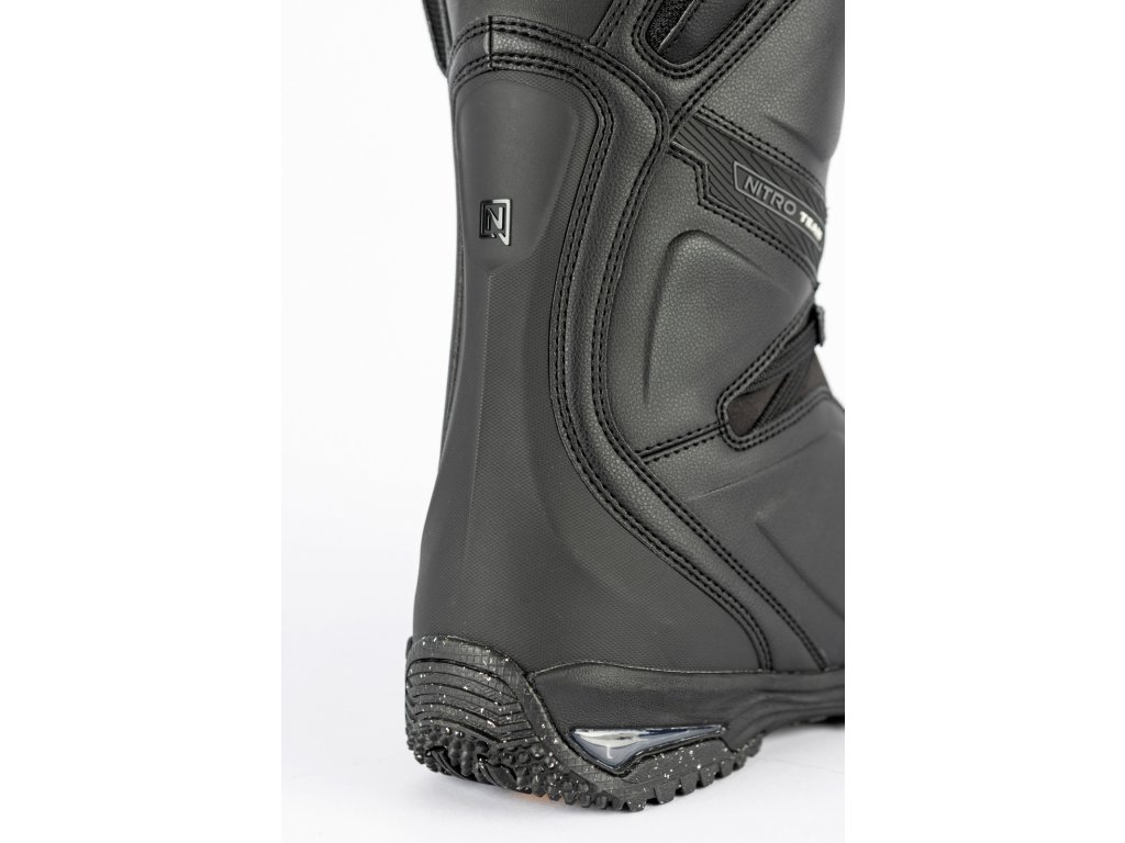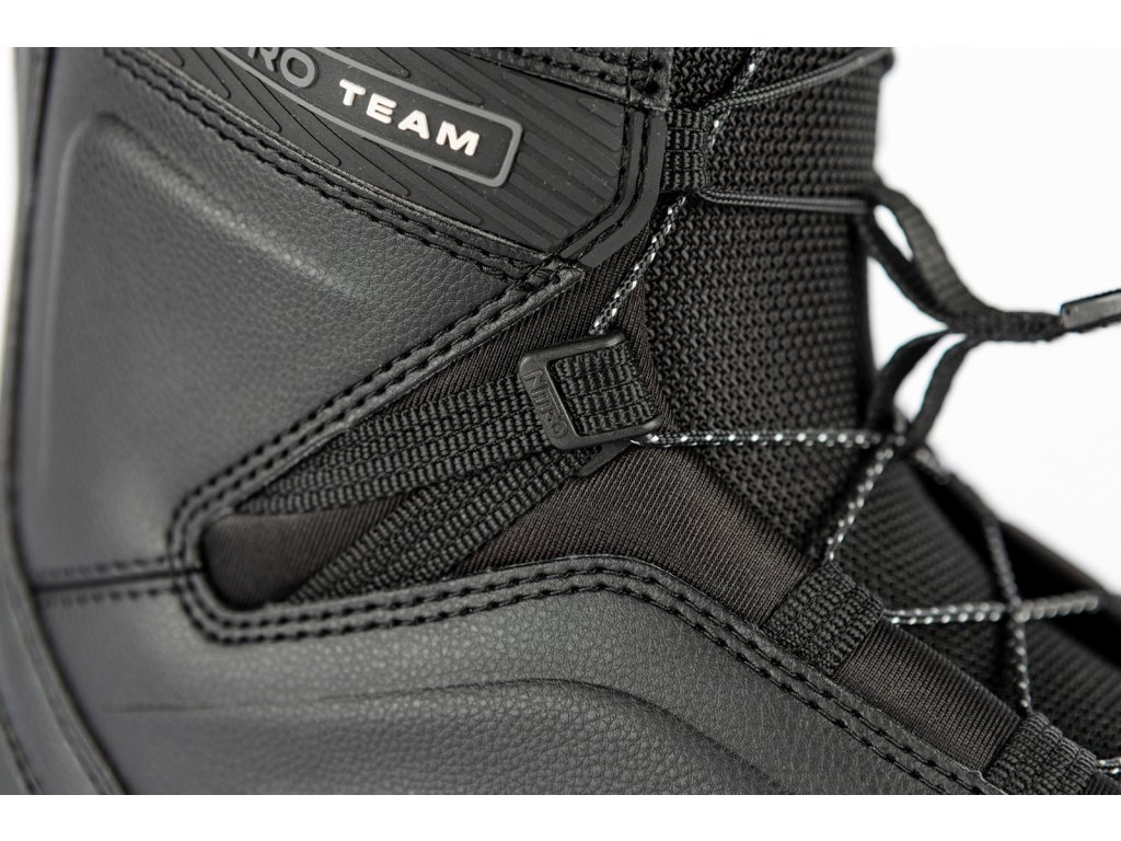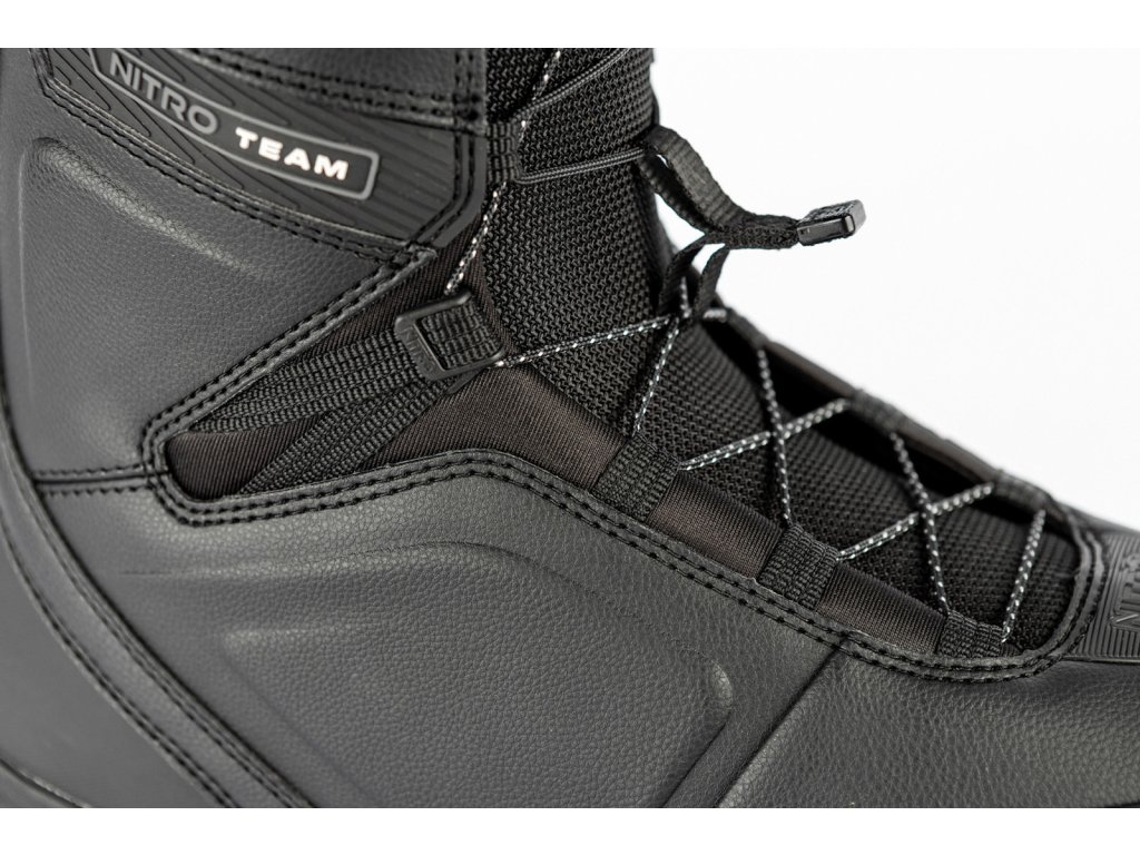 Nitro Team jsou považovány za nejvšestrannější boty na trhu, sednou jezdcům všech velikostí i tvarů. Náš team na nich tvrdě maká a jeho výsledky to potvrzují. Boty Nitro Team jsou jasnou volbou jak profíků, tak hobby jezdců, kvůli pohodlí, univerzální pružnosti a léty prověřenému výkonu. Podrážka VIBRAM ECOSTEP pro lepší trakci na kluzkém povrchu, je extrémně odolná. Vzduchové tlumení pod patou šetří vaše nohy a tak můžete jezdit od prvního lana až do večerka. Nově přemodelovaná vnitřní botička Cloud 9 (tepelně tvarovatelná), chránící vaše nohy před nárazy pomocí polštářků z D3O®, má perfektní termoizolační vlastnosti, 3D tvarovaný jazyk i oblast paty. Její přední panel Flex Toe zajišťuje dostatek prostoru pro prsty a vylepšená Ortholite® stélka o dvojí hustotě materiálu se zvýšenou oporou paty dodá tvé jízdě na jistotě a pohodě, navíc je antibakteriální a dá se prát. ILS šněrování vnitřní botky s Re/Lace zámkem se dá kdykoli bez problémů dotáhnout. Základem pořádného snowboardingu jsou ale nohy v teple. Stará se o to mimo jiné Therminator Shield, fólie, která chrání chodidlo. Teplo zůstává uvnitř a chlad nemá šanci. Team jsou boty, které dovezly Eero Ettalu až ke statusu legendy a Marcuse Klevelanda na trůn krále Instagramu. * VIBRAM® PODRÁŽKA VYROBENÁ Z VIBRAM® ECOSTEP™, EVA MEZIPODEŠEV * TLUMENÍ AIR DAMPENING * TERMOIZOLAČNÍ VRSTVA THERMINATOR SHIELD * ZPEVNĚNÍ HŘBETU BORY ARMORED SPINE * FLEX LINK DESIGN * 45° LACEGLIDER * UTAHOVÁNÍ TLS TWIN LACING SYSTÉM, TVAROVANÁ TLS TÁHLA * BAIL OUT SYSTÉM * TEPELNĚ TVAROVATELNÁ VLOŽKA CLOUD 9 * VYLEPŠENÁ INTEGROVANÁ PODPORA KOTNÍKU * PAMĚŤOVÉ PANELY Z LATEXU * ILS UTAHOVÁNÍ VNITŘNÍ BOTIČKY, RE/LACE ZÁMEK UTAHOVÁNÍ BOTIČKY * ORTHOLITE®HIGH CUP STÉLKA Z MATERIÁLU DVOU HUSTOT * TVRDOST: 8.