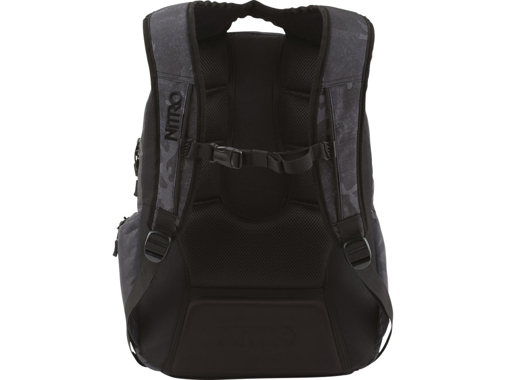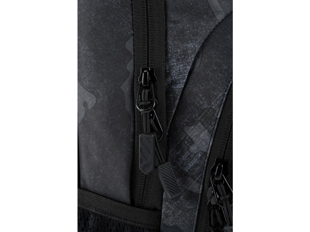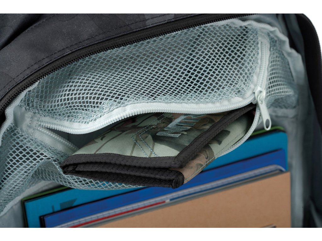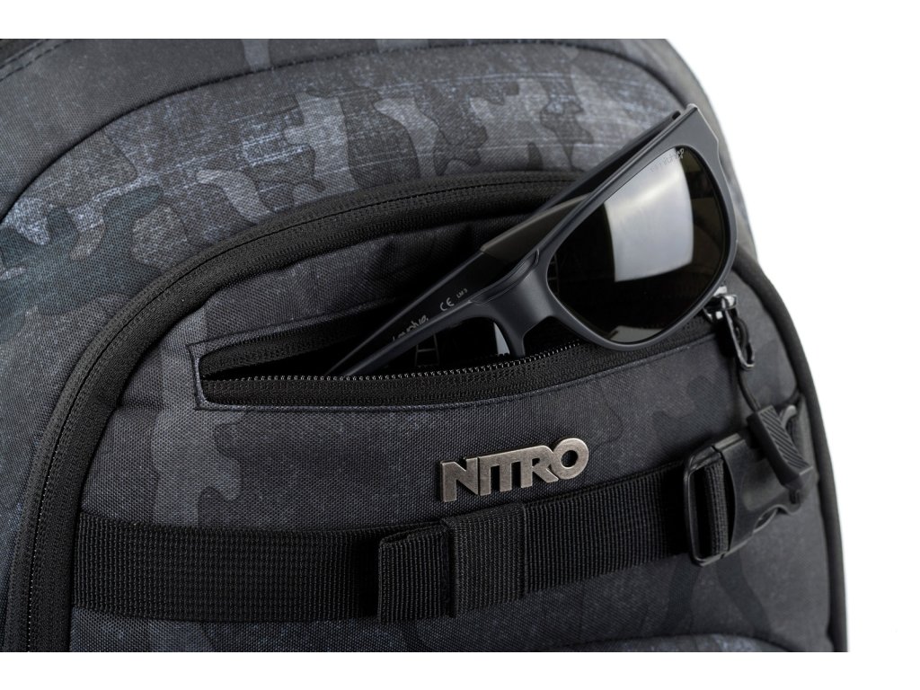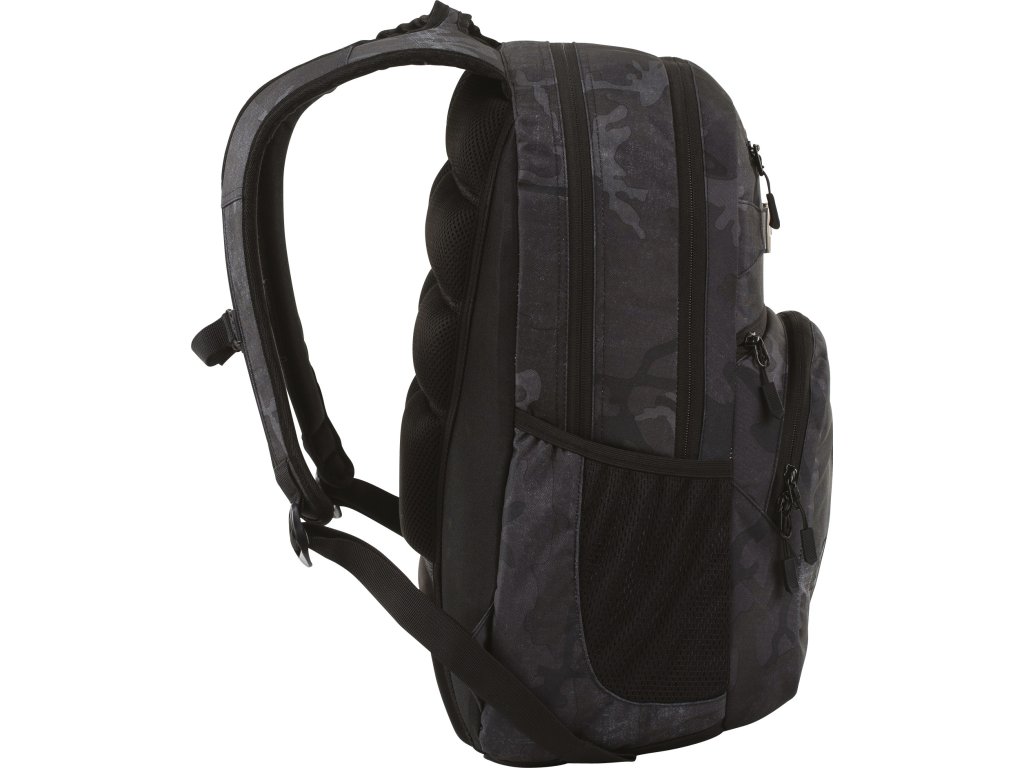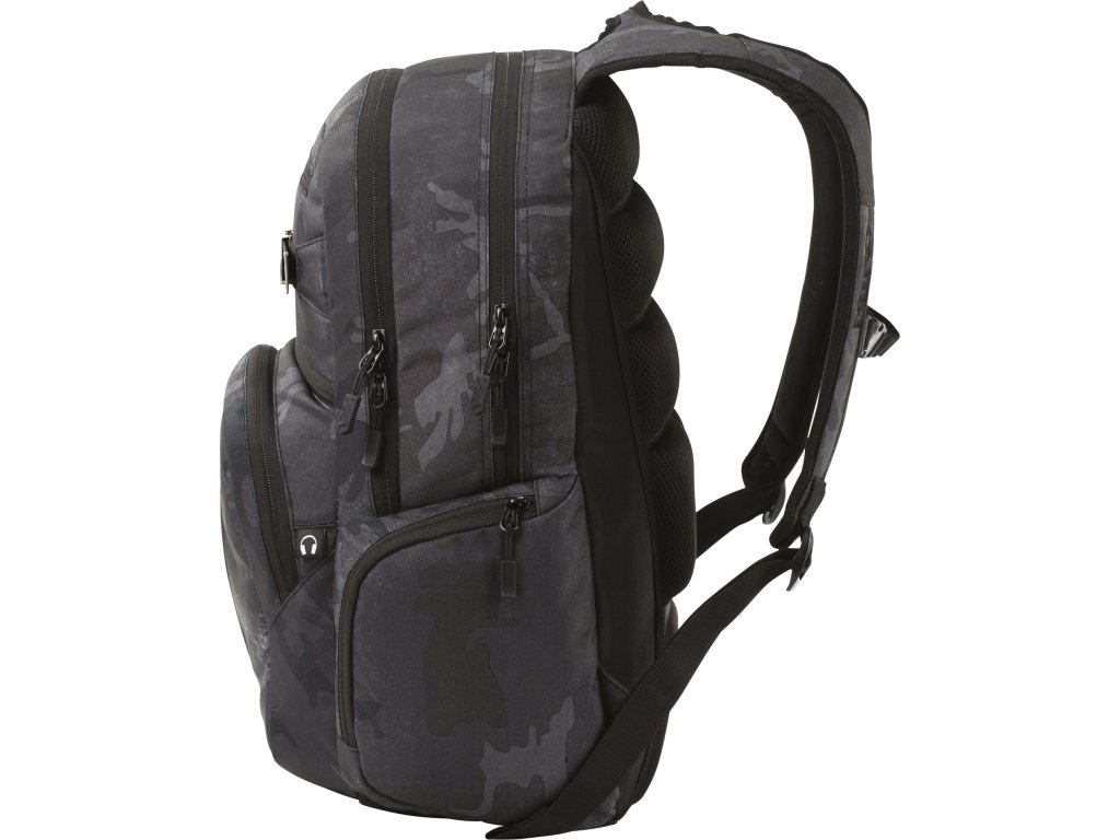 Fleecem vystlaná kapsa na brýle a podobně choulostivé věci, dvě hlavní prostorná oddělení, kapsa na tablet, vypolstrovaná kapsa na 17" notebook, popruh na nesení skateboardu, postranní kapsa na zip, postranní síťovinová kapsa na lahev. Objem 37 l. Rozměry přibližně 52 x 38 x 23 cm. Hmotnost 980 g.