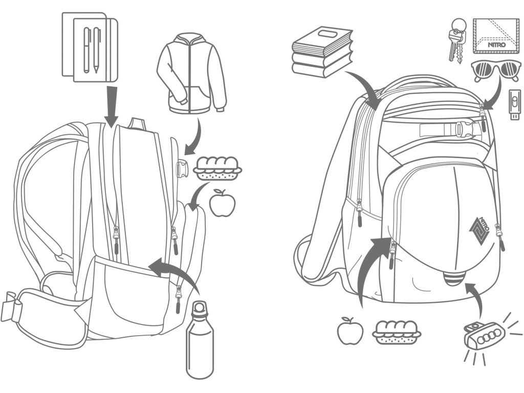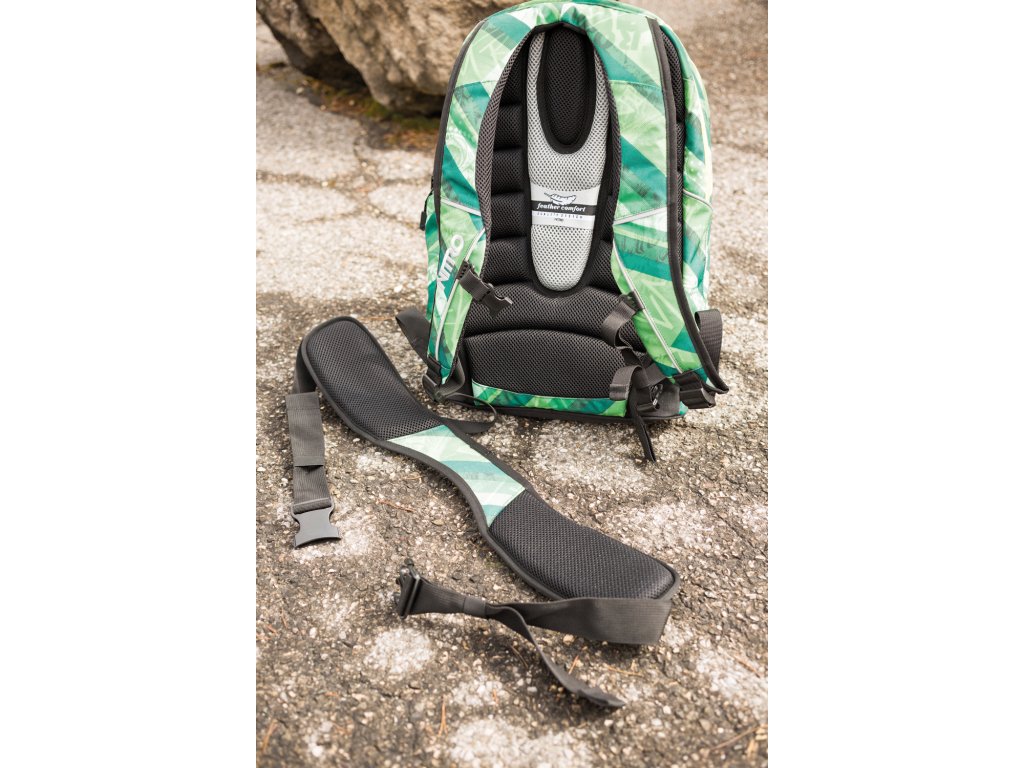 Přední termoizolační kapsa co zachová studené pití nebo svačinu, postranní kapsa na lahev, odpínací bederní pás, lehký a dýchavý zádový panel "Feather comfort", dvě velká oddělení, z nichž jedno obsahuje organizer na složky a sešity, reflexní prvky ze všech stran, měkké pohodlné ucho v horní části, ergonomické popruhy s nastavitelným hrudním pásem, měkká síťovina na popruzích zajištuje pohodlí ramen. Objem 30 l. Rozměry 44 x 30 x 22 cm.