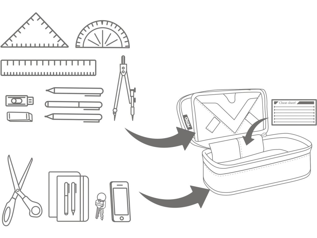 Objemnější verze našeho známého penálu. ROZMĚRY: 21 x 10 x 6,5 cm. VYCHYTÁVKY: vnitřní přepážka s gumovými očky na tužky a pera, malý Nitro trojúhelník s měřítkem a úhloměrem, rozvrh hodin ve speciální kapsičce a skrýš na taháky. Materiál 600D polyester, hmotnost 130 g.