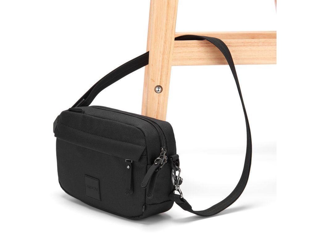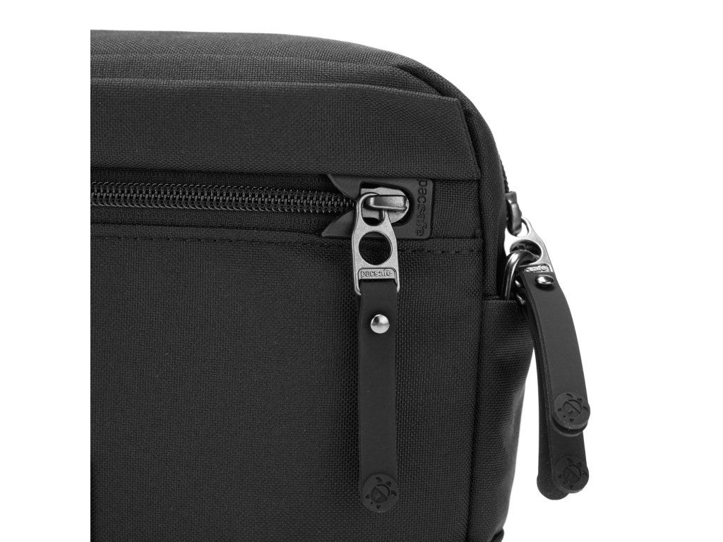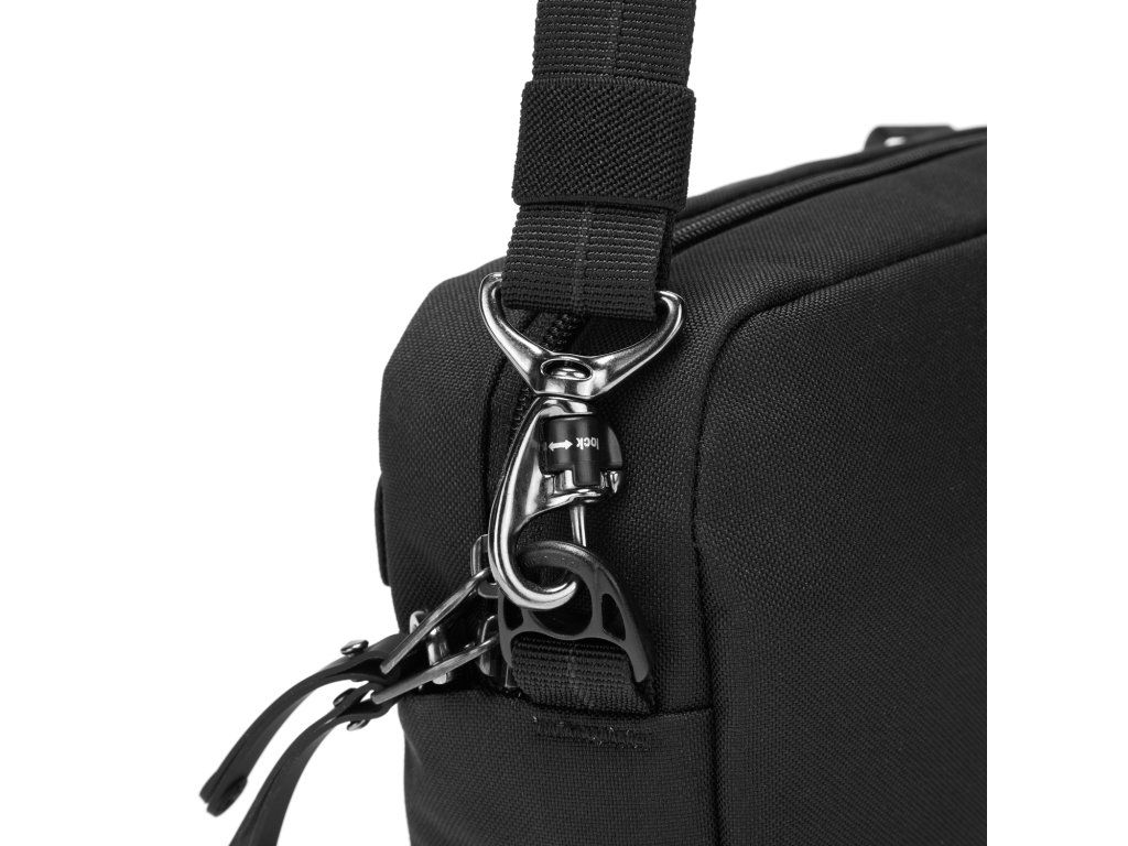 Popruh připevňuje k tašce TurnNLock zabezpečená karabina. Zipy chrání proti rozepnutí nový systém Secure dock lock a Zip clip. Hlavní popruh Carrysafe® proti proříznutí chrání vetkané lanko z Dyneema®. Pokusy o proříznutí těla tašky hravě překazí eXomesh® slashguard - našitá síť z ocelových lanek.