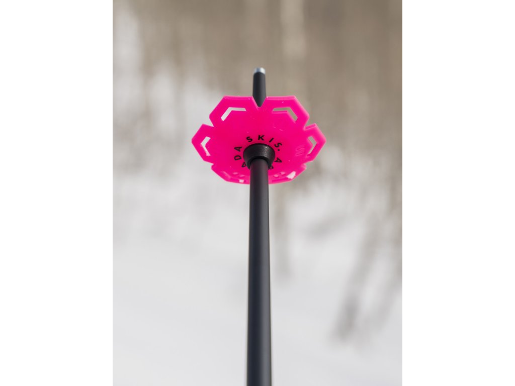 Oblíbené hůlky jsou vyrobeny z nejkvalitnějšího, super odolného hliníku 7075 Aluminium, mají ocelový hrot a 80 mm široký košíček, který nezklame v hlubokém sněhu ani jarní břečce. Gumový Bikový Grip ti díky nastavitelnému poutku jen tak nevyklouzne z ruky. Letošní řada v svěže moderním designu ti skvěle doladí tvůj outfit. Průměr 18 mm.