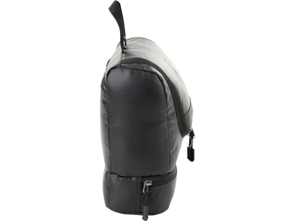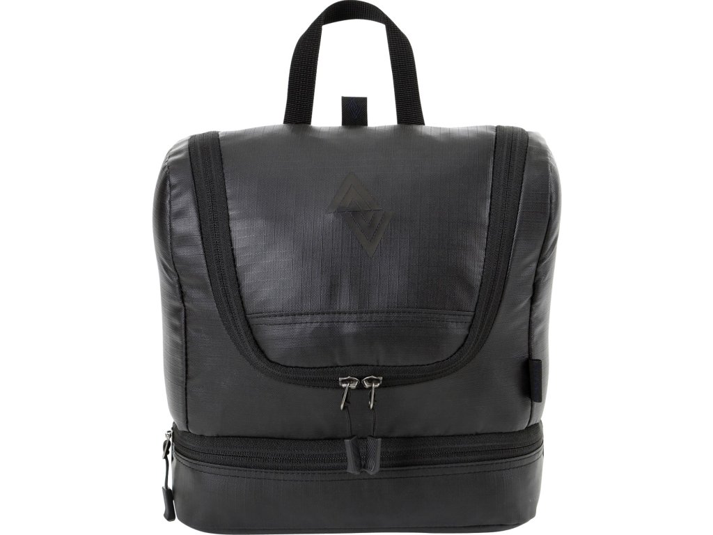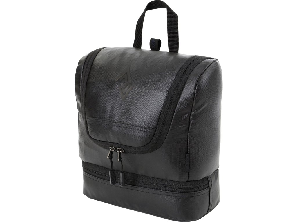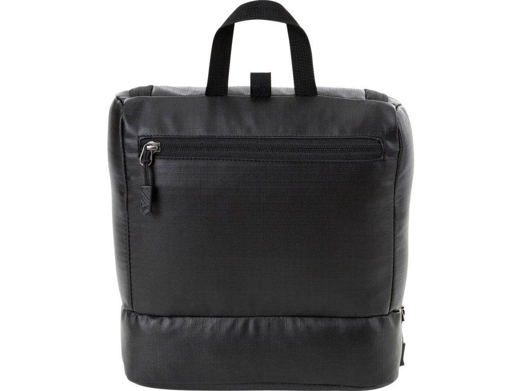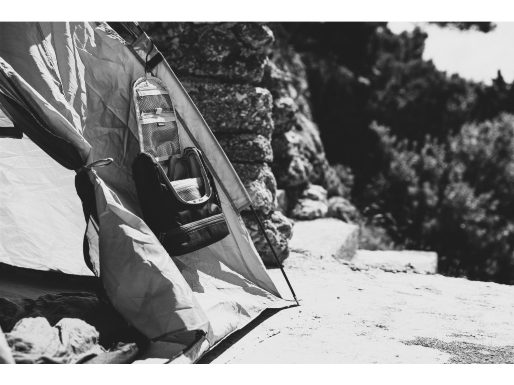 Cestovní, toaletní taška s háčkem k zavěšení a praktickým vnitřním uspořádáním. Hlavní prostor obsahuje 3 průhledné kapsičky na zip a fochy na zastrčení zubního kartáčku, pasty atd. V dolní části je další oddělený prostor na zip. Na zadní straně je další kapsička na zip. Rozměry 25 x 24 x 11 cm.