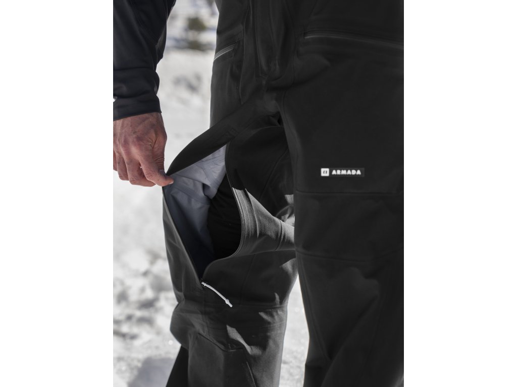 Minimalistické lacláče pro freeridové maximalisty jsou ušity z těch nejlepších materiálů do těch nejhorších podmínek. Nepostradatelný parťák pro bundu Haydon nebo Furtherance. Vysoce prodyšný třívrstvý Gore-Tex Performance tě udrží v suchu i v tom nejprudším slejváku a neprofoukne ani v orkánu. Zároveň zaručí příjemné klima i při sebenáročnějším výstupu a ty se tak jen tak nezpotíš. Speciální tkanina Gore-Tex Tricot Backer na vnitřní straně je příjemná na dotek a kalhoty tak můžeš při jarním skialpu pohodlně nosit i bez spodek. Povrchová úprava C6 DWR pro zvýšení vodoodpudivosti a ochrany materiálu neobsahuje nebezpečné PFOA a PFOS látky. Pro 100 % nepromokavost jsou všechny švy podlepeny Gore-Seam páskou a všechny YKK zipy opatřeny AquaGuard technologií. Nespočet kapes všude možně pojme kdeco. Přední kapsy jsou navíc opatřeny zipy v inovativně-diagonálním úhlu, takže při pohybu nezavází a nedochází k zbytečnému opotřebení a ohýbání. Designéři nezapomněli ani na vnitřní kapsu pro tvůj pípák, který tak můžeš pohodlně nosit na stehně. Zadní elastický panel tě nebude limitovat při žádném sportovním výkonu a plně nastavitelné kšandy zas vše podrží. Nechybí odvětrávací zipy na vnitřní i vnější straně stehen, nastavitelný pas, vnitřní chrániče nohavic proti vniknutí sněhu a Cordurou opatřené spodky nohavic proti proseknutí hranou lyže, které jsou vylepšeny tak, aby kryly větší plochu. Možnost propojení s Armada bundou patentem. Materiál: 100 % recyklovaný polyester. Certifikace Bluesign + 100 OEKO-TEX.