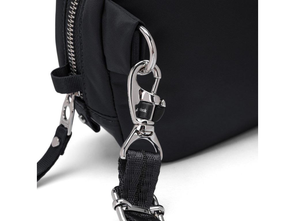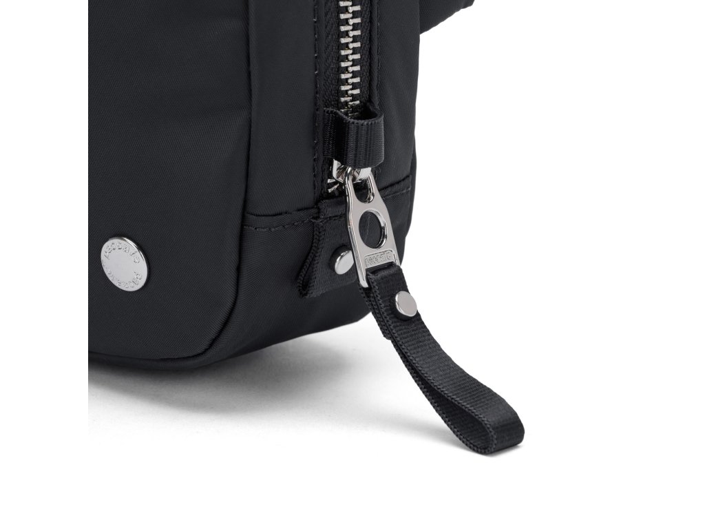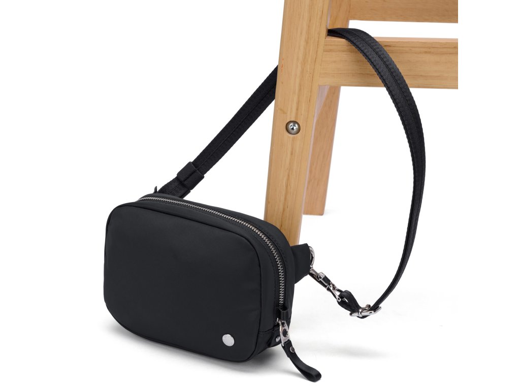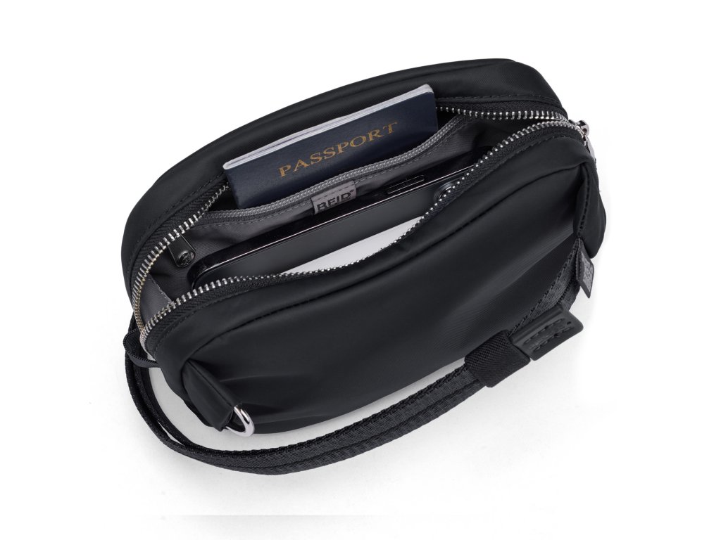 Malá, ale šikovná. Pacsafe W Micro Sling zvládne všechno, co potřebuješ mít po ruce, aniž by tě zbytečně zatížila. Telefon, makeup, kapesníky, AirPody – vše přehledně a bezpečně v jedné kompaktní tašce. Zip Tab zajistí, že obsah zůstane tam, kde má být. I přes svůj malý rozměr nabízí vnitřní organizaci: dvě zipované kapsy uvnitř. Jedna z nich má RFID ochranu, takže pas a karty jsou chráněné, druhá slouží na drobnosti, které chceš mít rychle po ruce. Nechybí ani poutko na klíče nebo peněženku. Bezpečnost je samozřejmostí: Carrysafe® popruh s ocelovým lankem Dyneema® odolá proříznutí, integrovaná síť eXomesh® chrání tělo tašky, Zip Tab drží obsah uvnitř, materiál i kapsy blokují RFID. Vyrobeno z recyklovaného PET materiálu s vodoodpudivou úpravou – lehké, odolné a šetrné k planetě.