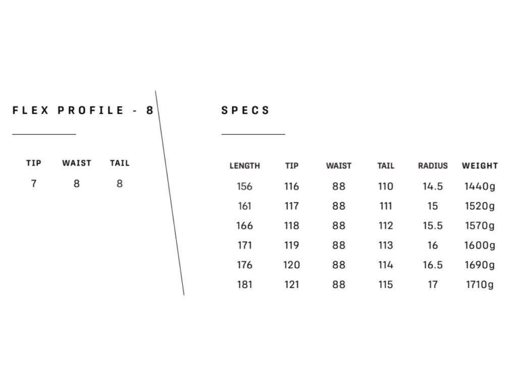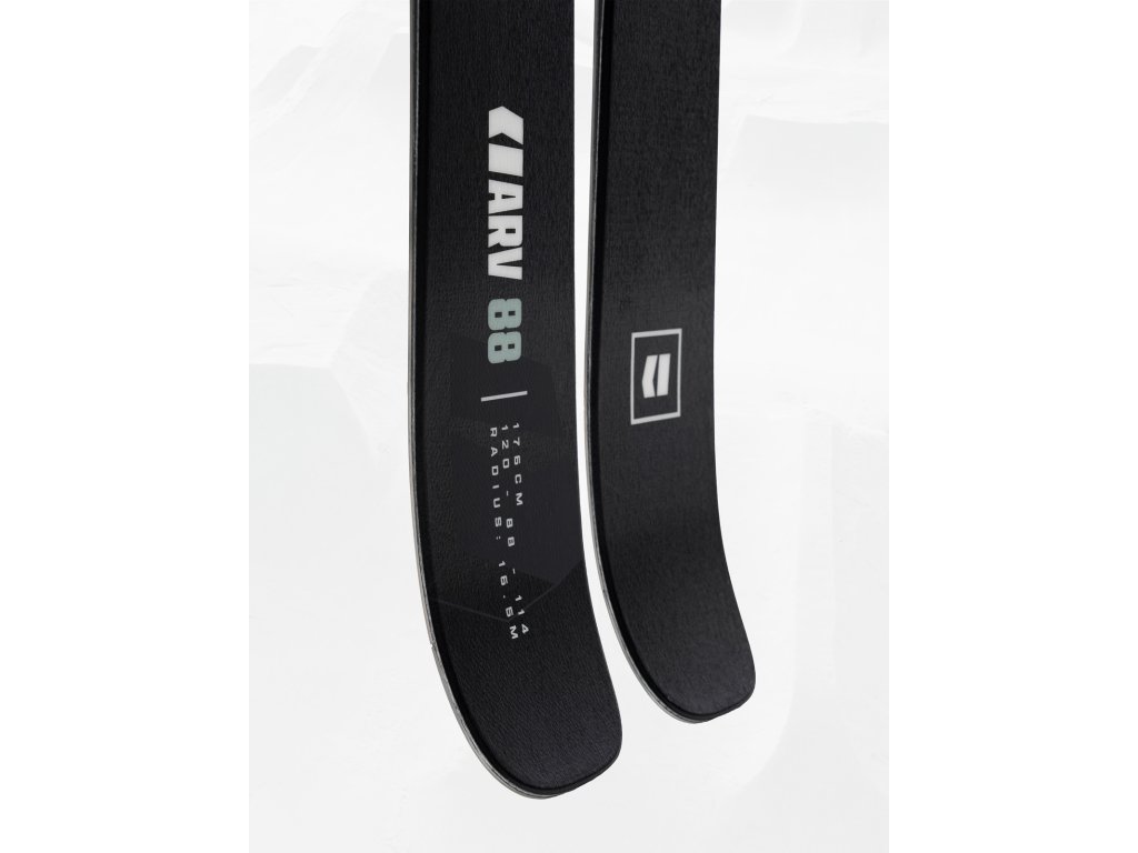 Inovativní smršť v Armada týmu k jejím dvacátým narozkám měla za následek další kompletně překopanou freestylovou lyži. ARV 88 je přímým potomkem skvělé ARV 84, kterou ovšem na plné čáře předčí v odolnosti a hravosti. To se podařilo díky inteznivní práci inženýrských mozků, stájových jezdců a trenérů a testování jednoho prototypu na svahu za druhým. Revoluční spojení celodřevěného topolového jádra se sidewally w3Dgewall využívá unikátního zkosení kontaktních ploch, což má za následek kompaktní lyži, která toho vydrží hodně v tahu i nárazu a nezastaví ji ani pořádná šleha do železného pylonu. Tohle monolitové kombo ve spojení s tužším flexem, jde o nejtvrdší typ ARV série, ti přinese solidní pop a jistou přilnavost hran i na pořádně zmrzlém odskoku. Téměř 4 mm hluboký camber pod botou a užší radius osvědčeného AR Freestyle Rockeru má víc tradiční feel než ostatní ARVéčka, ale v parku se ti snadná ovladatelnost, hravost a 100% kontrola při nájezdu na kicker nebo rampu bude hodit. Zároveň rocker a prodloužený radius na špičce a patce vykryje při odrazech i dopadech všechny nerovnosti a lyže se ti jen tak nekousne. Odolná jasanová vložka pod vázkem pro jeho jistější upevnění, masivní 2.5 Impact Edge hrany a kvalitní sintrovaná S7 skluznice zajistí nesmrtelnost, takže se nemusíš bát to posílat celou sezónu, od rána do večerka, rok za rokem. ARV 88 je prostě parková kudla zvyklá vyhrávat. Přidány kratší délky 156 a 161 cm, aby si mohli užít pořádnou jízdu i menší bytosti a především naše juniorská omladina. Flex lyže: špička 7; pod botou 8; patka 8. Parametry lyže při délce 156 cm: 116 / 88 / 110 mm, radius 14,5 m, hmotnost jedné lyže 1 440 g; 161 cm: 116 / 88 / 111 mm, radius 15 m, hmotnost jedné lyže 1 520 g; 166 cm: 118 / 88 / 112 mm, radius 15,5 m, hmotnost jedné lyže 1 570 g; 171 cm: 119 / 88 / 113 mm, radius 16 m, hmotnost jedné lyže 1 600 g; 176 cm: 120 / 88 / 114 mm, radius 16,5 m, hmotnost jedné lyže 1 690 g; 181 cm: 121 / 88 / 115 radius 17 m, hmotnost jedné lyže 1 710 g.