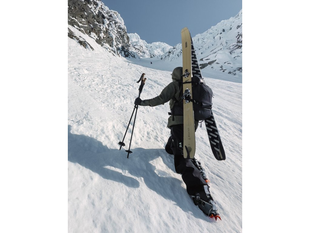 Nejsilnější kůň skitúrovací série Locator je stvořen pro dny, kdy se servíruje deset chodů hlubokého prachu. To opravdu nechceš sedět doma na zadnici. Tak sbal pásy, sváču a svatou trojici lavinového boha a vyraž vstříc bílému nebi. Locator 112 exceluje jak na cestě dolů tak nahoru. Důraz v konstrukci je kladen především na přesném vybalancování váhy, aby se lyže cestou na vrchol moc nepronesly a zároveň byl sjezd epicky bezchybný. S váhou neuvěřitelných 1.5 kila se to klukům z Armady povedlo, takže si můžeš bez únavy v nohách vychutnat víc vertikálních metrů. EST Freeride Rocker má sice mělčí camber prohnutí, ale v kombinaci s širokým rádiusem umožní lyži plout lehce prachem a bezstarostně iniciovat oblouk za obloukem. Nejlehčí celodřevěné jádro Caruba Core je opatřeno AR75 Sidewally a je zcela vyztuženo karbonovými vlákny, které jsou navrstveny tak akorát, aby Locator vážil co nejméně a mohl ti v kuloáru předvést výborné jízdní vlastnosti hodné freeridové kamikadze. I při sebešílenější palbě se můžeš spolehnout na lehké hrany 1.7 Lightweight Edge, Titanalovou vložku pod lyžáky pohlcující nepříjemné vibrace a extra svižnou skluznici Comp Series s částečky uhlíku. Při výšlapu určitě oceníš designově vychytanou patku AR Bat Tail ve tvaru Batmana, ve které bude upevňovací klip tvých pásů vždy vycentrován a už ho nikdy nebudeš při chůzi ztrácet a bezprizorně courat ve sněhu. Flex lyže: špička 7; střed 8; patka 8. Parametry lyží při délce 166 cm: 134 / 112 / 126 mm, radius 22 m, 1 425g; 173 cm: 135 / 112 / 127 mm, radius 23 m, 1 525 g; 180 cm: 136 / 112 / 128 mm, radius 24 m, 1 575 g; 187 cm: 137 / 112 / 128 mm, radius 26 m, 1 650 g.