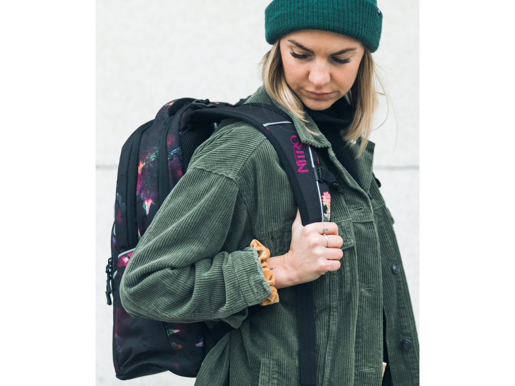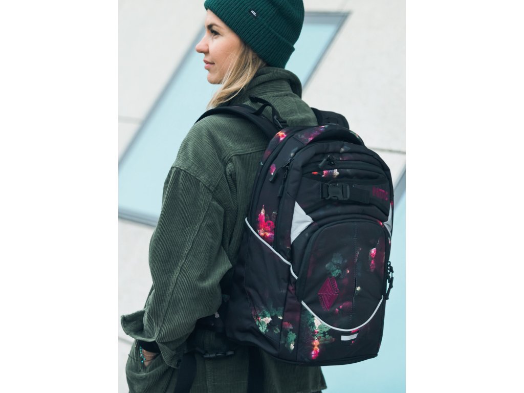 Fleecem vystlaná kapsa na brýle a podobně choulostivé věci, dvě hlavní prostorná oddělení, z nichž jedno obsahuje organizer na složky a sešity, fleecová kapsa na tablet. Přední termoizolační kapsa co uchová studené pití nebo svačinu pěkně v chladu, postranní kapsa na lahev, odpínací bederní pás, lehký a prodyšný zádový panel "Feather comfort". Nechybí reflexní prvky ze všech stran, měkké ucho v horní části a pohodlné ergonomické popruhy z měkké síťoviny s nastavitelným hrudním pásem. Objem 32 l. Rozměry 44 x 30 x 22 cm. Hmotnost 1,1 kg.