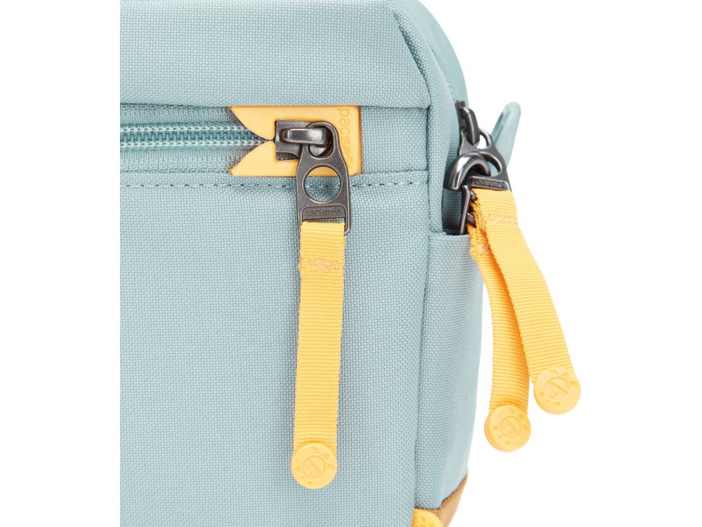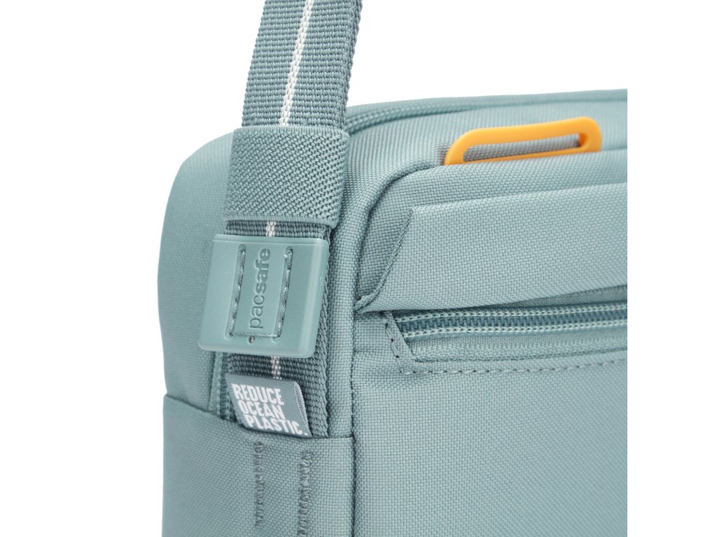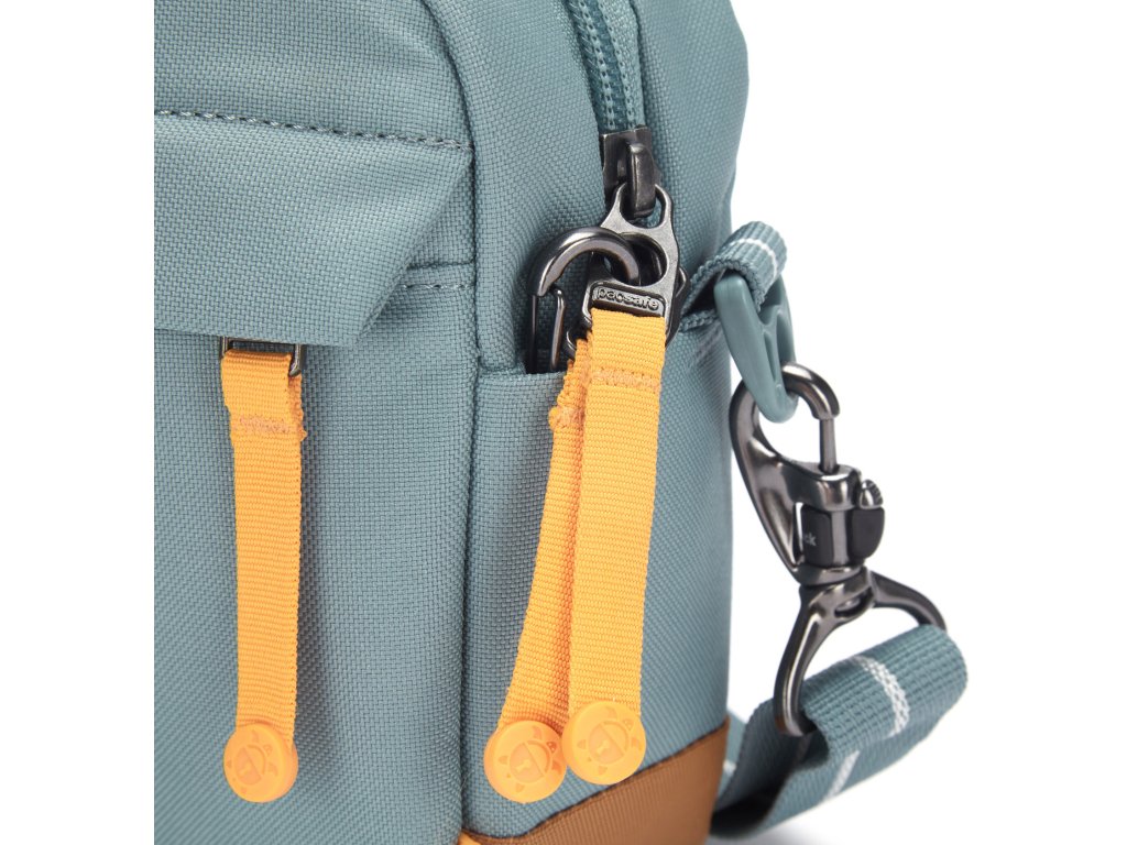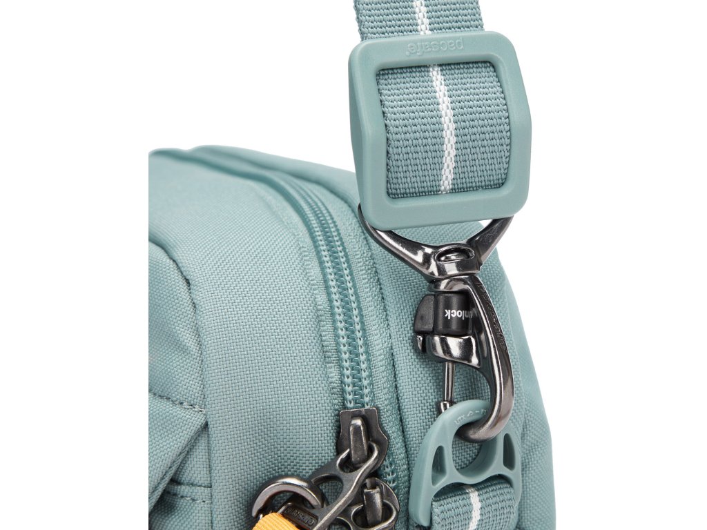 Popruh připevňuje k tašce TurnNLock zabezpečená karabina. Zipy chrání proti rozepnutí nový systém Secure dock lock a Zip clip. Hlavní popruh Carrysafe® proti proříznutí chrání vetkané lanko z Dyneema®. Pokusy o proříznutí těla tašky hravě překazí eXomesh® slashguard - našitá síť z ocelových lanek.