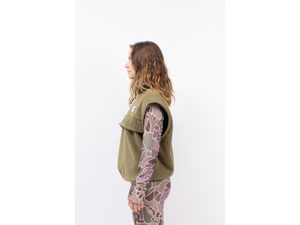 Nová fleecová vesta je variací naší nejoblíbenější mikiny Ball Fleece. Funkčnost nebyla nikdy víc in. Fleece střední gramáže tě udrží v příjemném teple, nadto skvěle odvádí vlhkost od těla a tím tě udrží v pohodovém suchu a teple od rána do večera. Ať už vestu zvolíš jako módní doplněk nebo s ní vyrazíš na opravdovou misi, nebudeš zklamaná. Vysoký límeček ochrání tvůj krk před nepříjemným větrem, ten můžeš v případě teplejších jarních dní rozepnout díky kvalitnímu YKK® zipu a snadno tak regulovat teplotu. Na zip je i vpředu velká kapsa, kam se vejde jak tvůj mobil, peněženka, klíče, ale i kulich nebo rukavice. Spodní lem lze stáhnout. Materiál: 100 % recyklovaný fleece polyester. Recyklovaný polyester je certifikovaný známkami GRS® a OEKO-TEX®, které zaručují velmi přísnou kontrolu kvality, udržitelnosti a férovosti a při výrobě znamenají snížení spotřeby ropy, vody a energií.